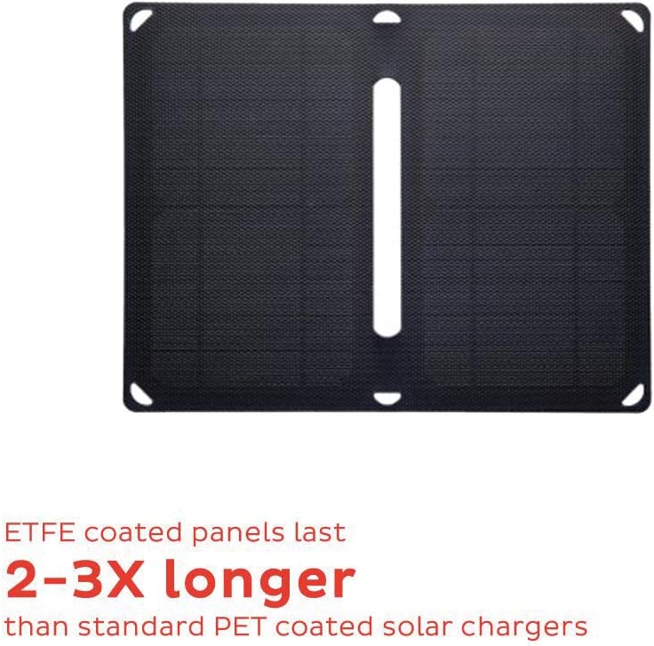 • TOUGH IN THE SUN - HIGH QUALITY, TESTED MATERIALS | The waterproof, UV, and scratch-resistant coating is built to last and go wherever you go. The 10 Watts / 5V folding panel uses ETFE coating instead of PET to last outside at least 3x longer than competitors’ products (5+ years)
