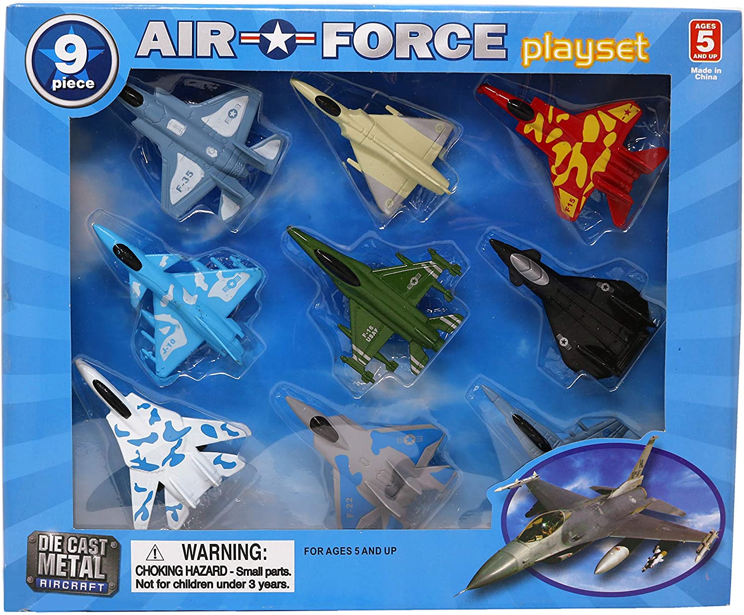 Metal die cast Toy air Plane Set of Military Planes and Jets. Pack of 9.