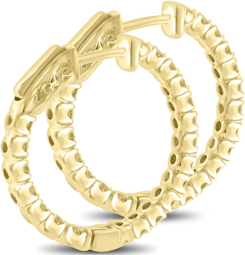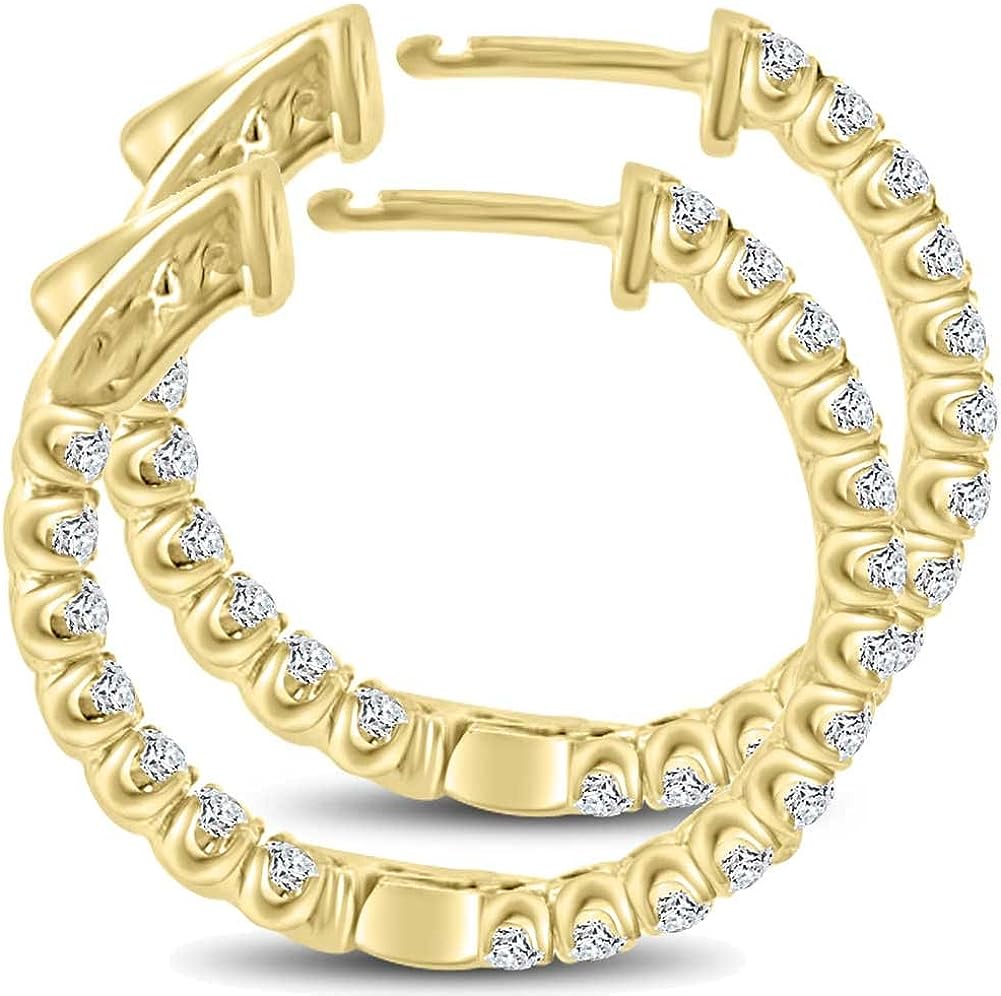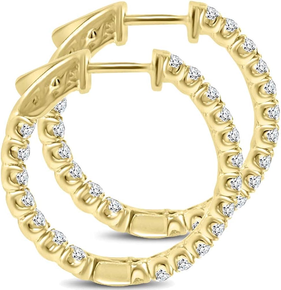 Madina Jewelry 2.10 ct Ladies Round Cut Diamond Hoop Huggie Earrings in Yellow Gold
