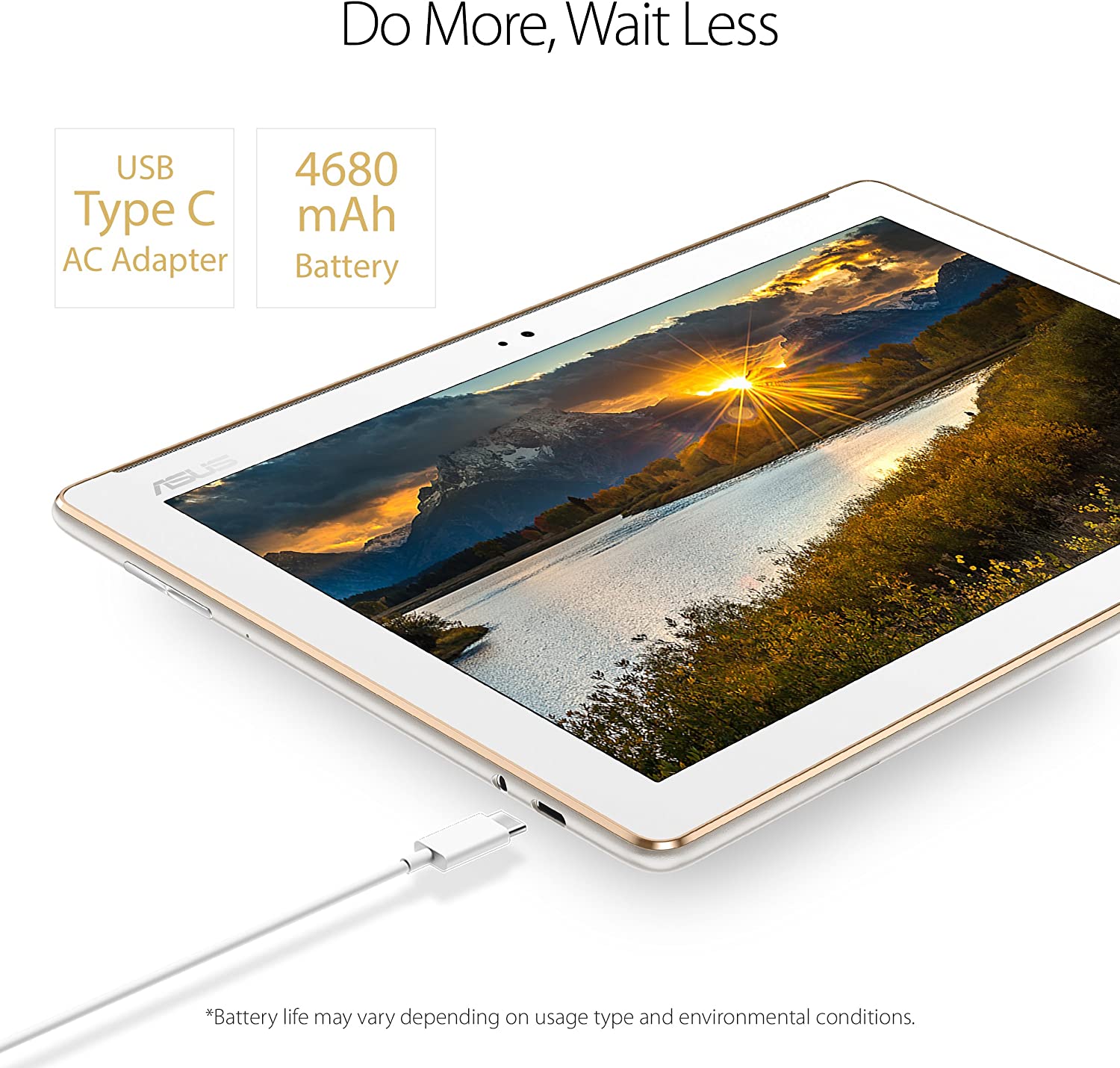ASUS ZenPad 10 delivers exceptional performance with Quad-core processor, 2GB memory and 16GB on board storage. It also has any-way-up USB-C, rapid fingerprint security, and high-capacity 4680mAh battery to keep the entertainment going.