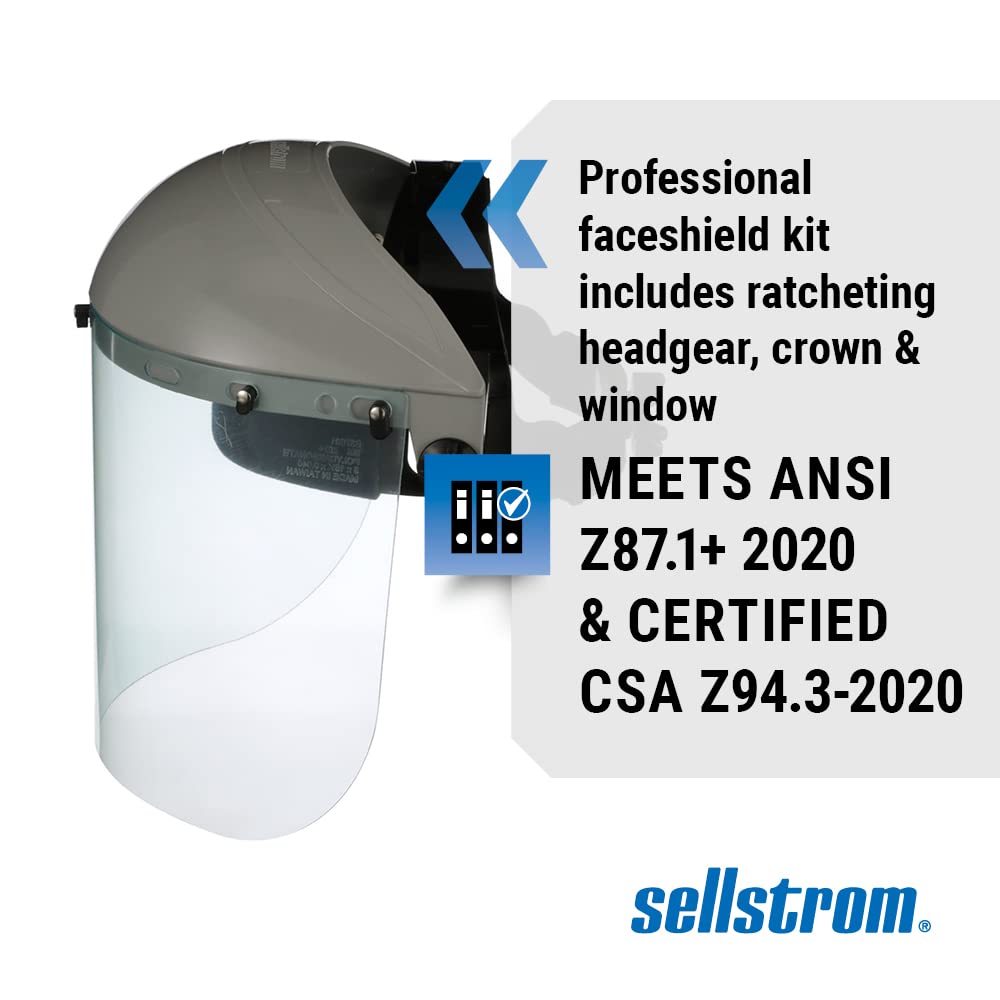 Sellstrom Safety Face Shield Advantage Series - For Grinding, Welding, Construction - Clear Window - Ratcheting Headgear