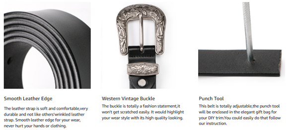 • ✦ Can be trimmed - This belt can be trimmed easily without any damage to the belt. There is punch tool and trim instruction card with the belt. So it is okay for you to buy this belt even you are quite thin.