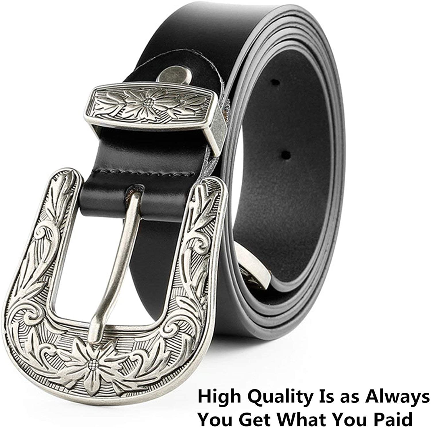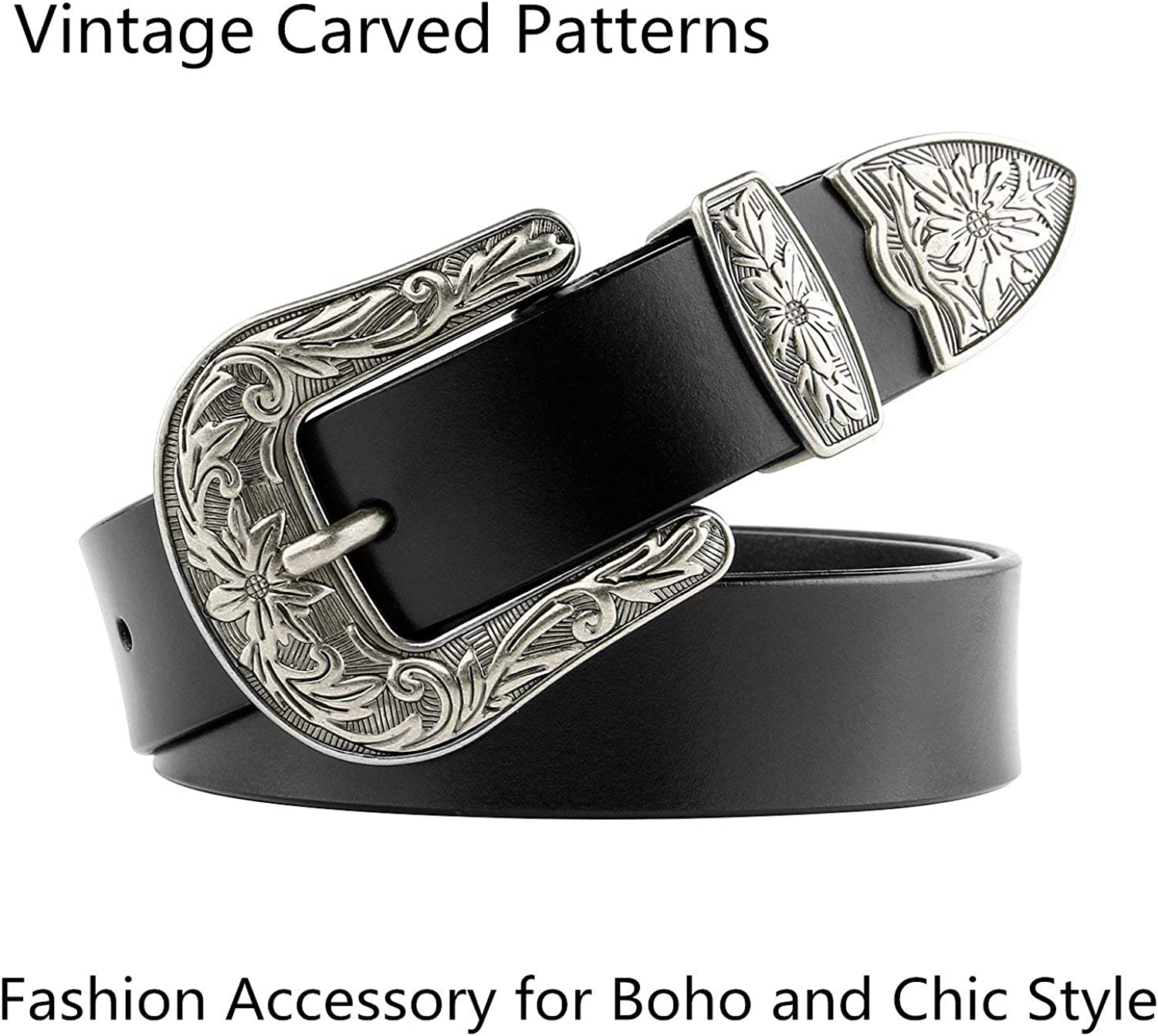 JASGOOD Women Leather Belts Ladies Vintage Western Design Black Waist Belt for Pants Jeans Dresses