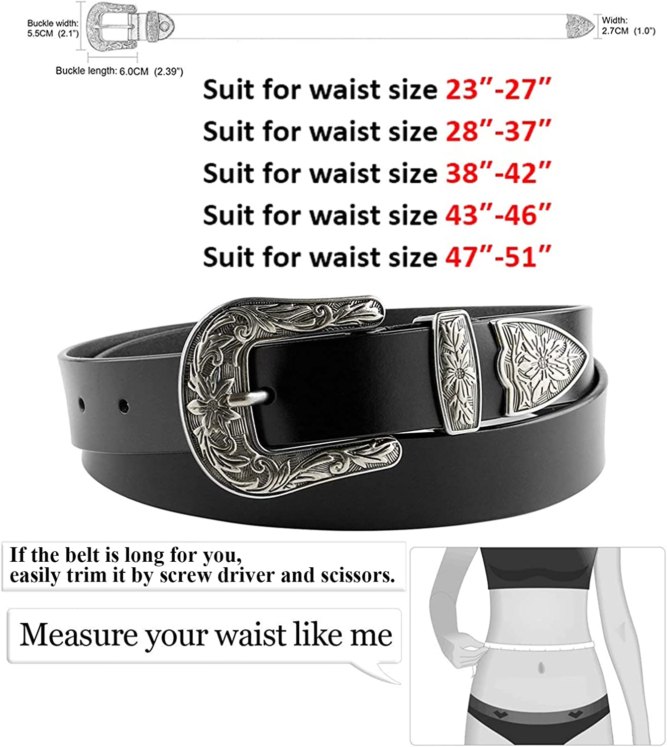 • ✦ Suitable Size - Suit for women pants size from 23”-27”/ 28”-34”/35”-39”/40”-44”/45”-50”. To get more accurate size, belts are all tried on by our male/female staffs, you can feel free to buy.