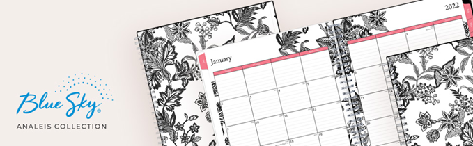 Plan your year in style with the beautiful florals and classic colors of the 2022 calendar year Analeis collection. This stylish CYO (create your own) cover planner will keep you organized everywhere you go. Add in your favorite photos, sentiments, notes or memories to the clear cover pocket, and keep organized with dated monthly pages inside for easy scheduling. Simple page designs add a touch of style and offer plenty of room for all of your important information. Designed with practicality and ease of use in mind, this floral agenda's monthly calendar views offer ample writing space for long-term planning and feature durable tabs for easy access to each month’s plans. High quality white paper provides clean writing space for jotting down your appointments, to-dos and reminders. Durable coated tabbed dividers are long lasting and make accessing information a breeze. Use this dated planner organizer to keep track of your appointments, and to write down notes and ideas in one place. Premium quality covers and twin-wire binding provide reliable durability for daily use. Stay on track throughout the year with this 8 x 10 planner dated January 2022 - December 2022. Mix and match with other Analeis Collection planning products from Blue Sky to organize your daily life. Blue Sky creates modern and sophisticated organizational planners and calendars to fit the scheduling needs of busy people - whether it’s for business professionals, college students, teachers, or anyone with appointments to make note of. Keep your life organized with our full line of products including desk pad calendars, wirebound tabbed weekly and monthly planners with contacts and notes pages to accommodate your scheduling needs, and laminated two-sided wall calendars, all in a variety of colors and patterns to suit your lifestyle and personality.