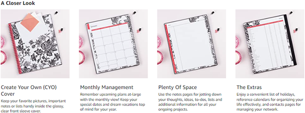 • Printed on high quality white paper for clean writing space, with premium quality covers in classic colors and durable, coated tabs that withstand constant use throughout the year