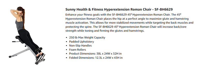 Model Name‎Sunny Health & Fitness SF-BH6629 45 Degree Hyperextension Roman Chair