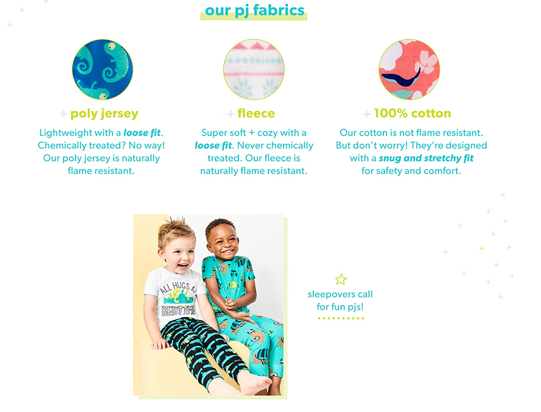 - Cotton tops are not flame resistant. To help keep children safe, cotton pajamas should always fit snugly. Fleece pants are flame resistant