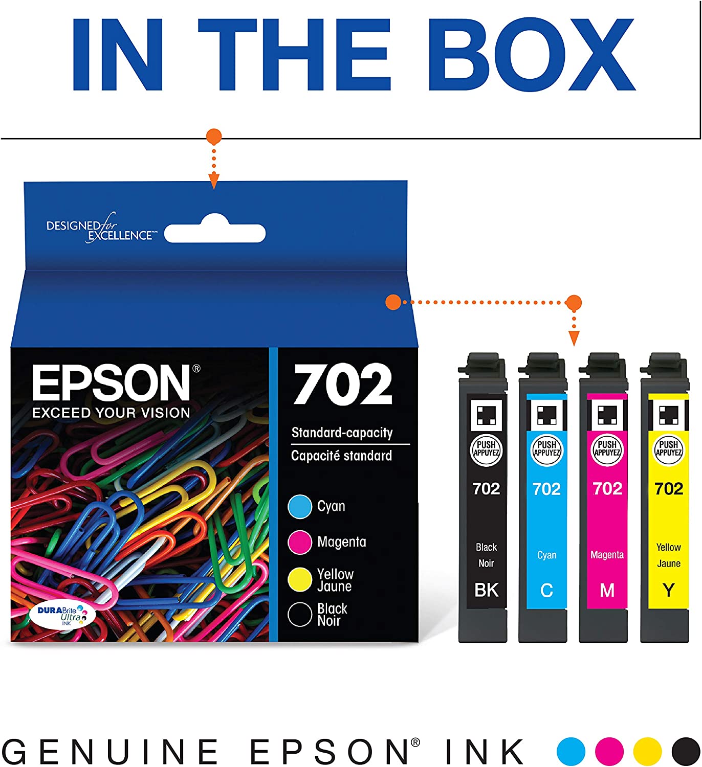 Compatible Epson models:WorkForce: Pro WF-3720, Pro WF-3730, Pro WF-3733 DURABrite Ultra T702 Ink Black and color ink cartridge yields up to 350 pages. DURABrite Ultra Ink produces prints that look brilliant on both plain and glossy photo paper. Worry-free handling - smudge, fade and water resistant prints. Recycling solution - designed to encourage recycling, helping you divert materials from landfill.
