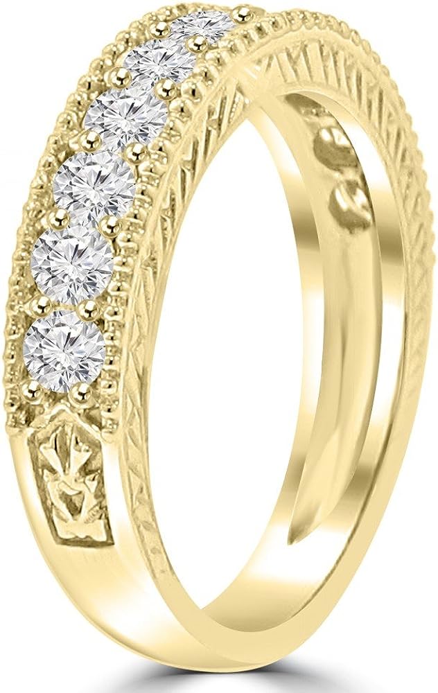 Madina Jewelry 1.10 ct Ladies Round Cut Diamond Wedding Band Ring with Millgrain Edge in 18 kt Yellow Gold