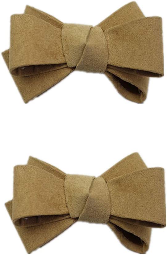 Douqu Assorted Color Fashion Leather Bow Shoes Clips Velvet Decorative Shoe Accessories Shoe Clip Charms (Khaki)