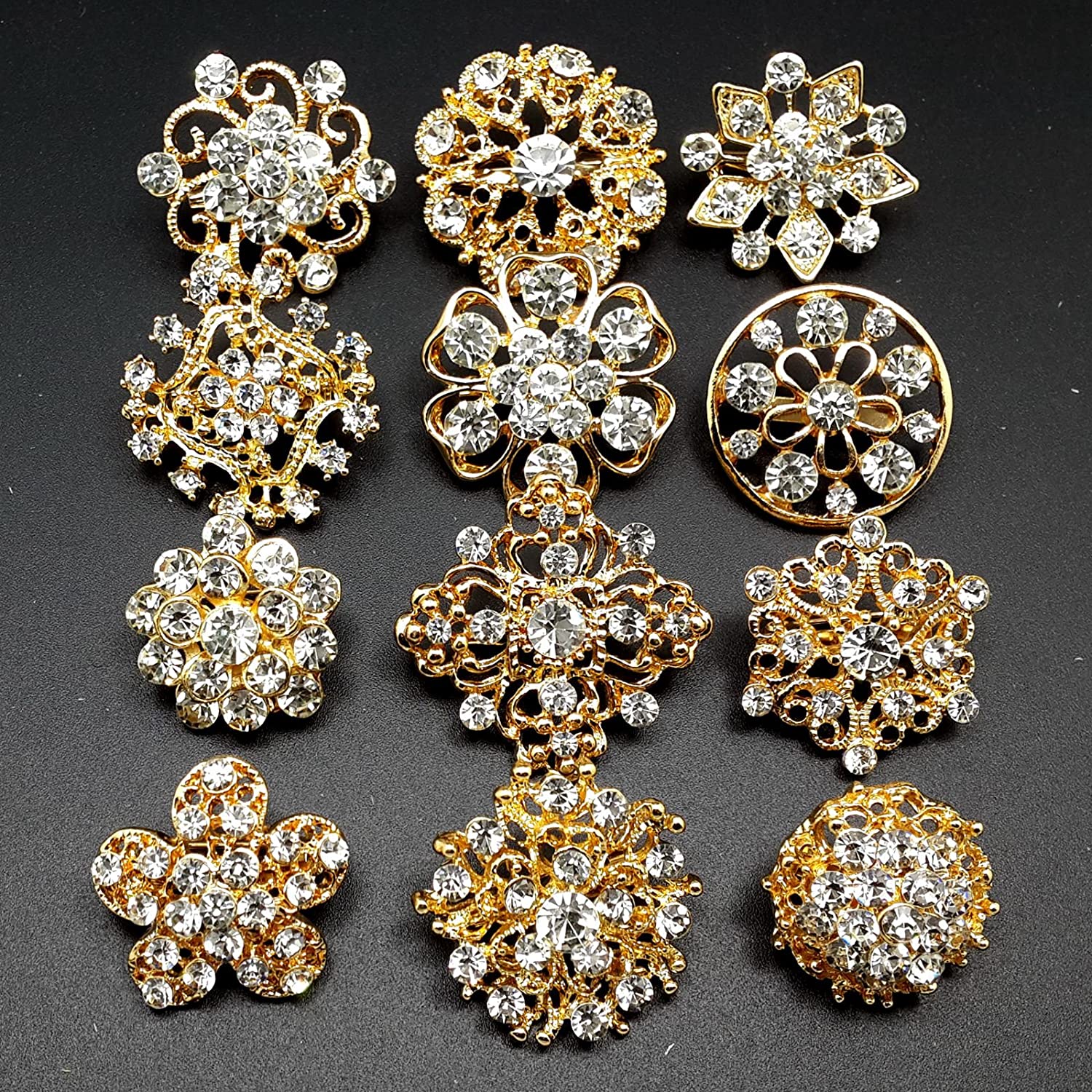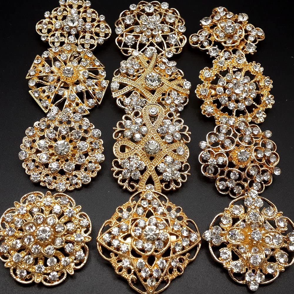 Lot 24pc Clear Rhinestone Crystal Flower Brooches Pins