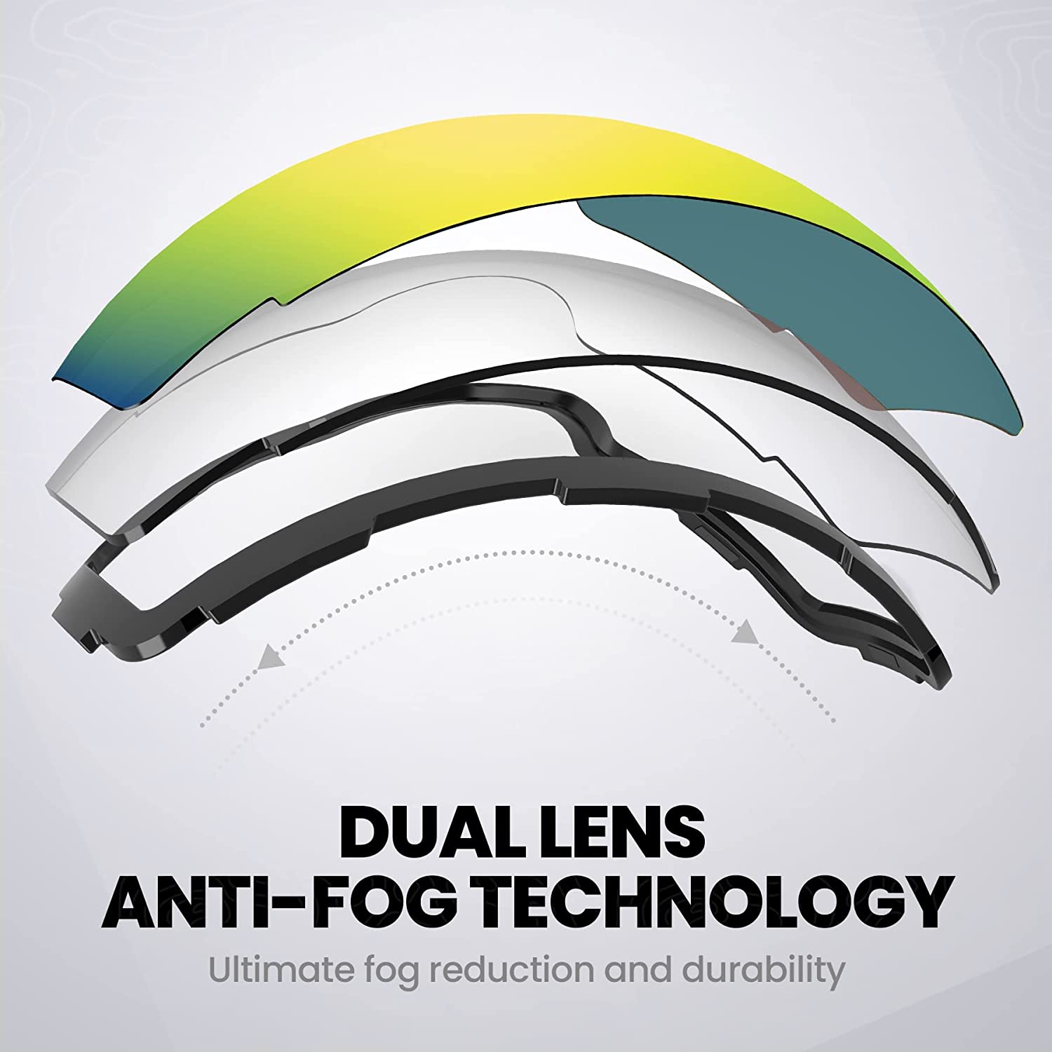 ANTI-FOG TECHNOLOGY - Dual-lens insulation and anti-fog coating will give you CLEAR VISION.