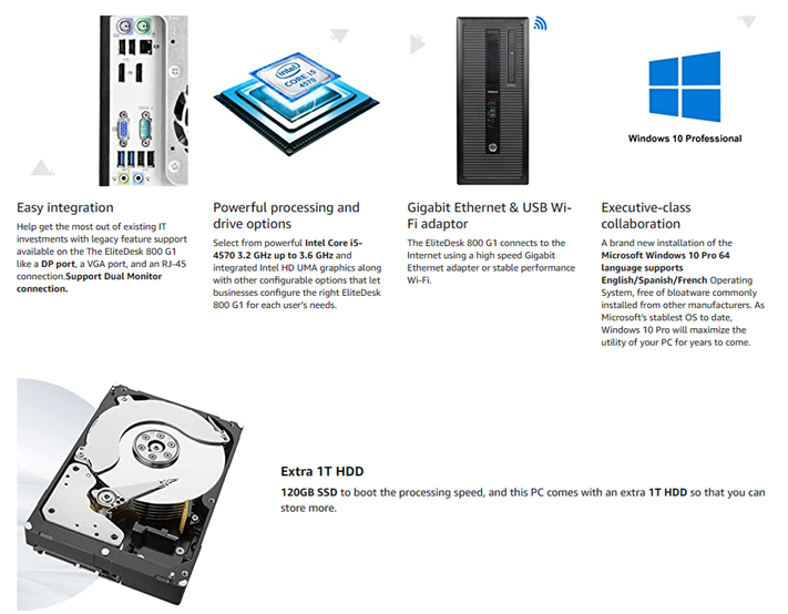 • ABUNDANT STORAGE AND MEMORY – The combination of key integrated components power this PC to maximum performance: Arrives with a 16 GB Memory and 120 GB Solid State Drive with a 1 TB Hard Disk Drive for efficient multi-tasking and robust hard drive space for files, apps, music and movies set this computer apart to excel at work, home or school. Included Peripherals: USB Keyboard and Mouse, USB WiFi Adapter