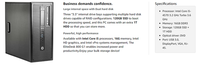 HP EliteDesk 800 G1 Small Form Business High Performance Desktop Computer PC (Intel Core i5 4570 up to 3.9GHz, 16G RAM, 120G SSD+1T HDD, DVD-ROM, WiFi, DP, Windows 10 Professional) (Renewed)