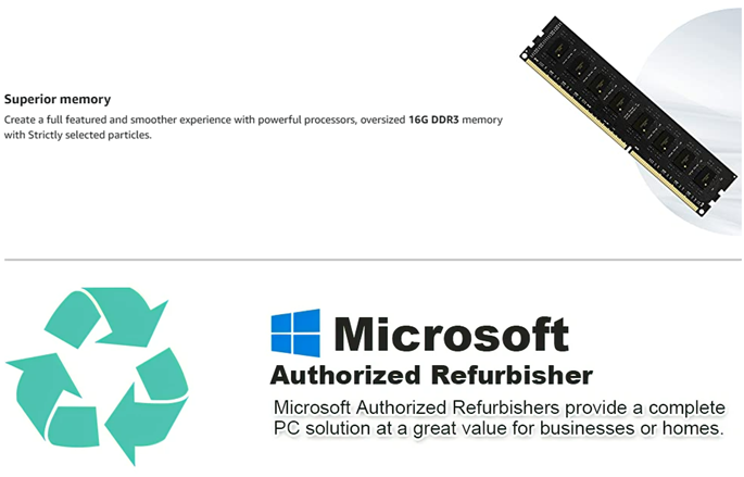 • MICROSOFT AUTHORIZED REFURBISHED - Microsoft Authorized Refurbishers (MAR) are recognized as the leaders in refurbished computers for every environment. Following strict requirements and standards established by Microsoft, MAR providers ensure superior quality and a like-new professionally refurbished computer. Your computer will come with a legal Certificate of Authenticity (C.O.A.) digitally rendered to the PC for an easy, secure and convenient set-up process.
