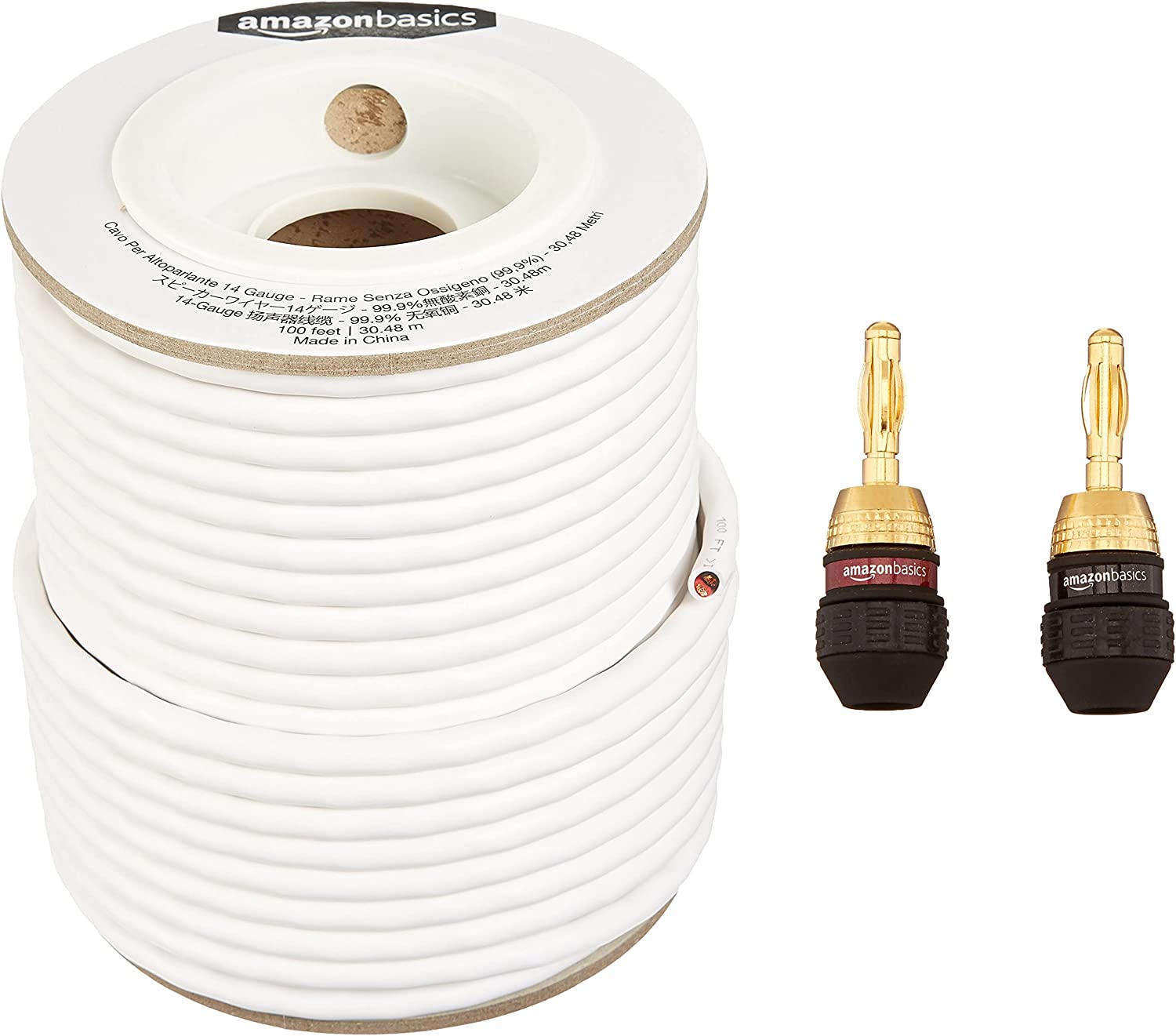 Amazon Basics 14-Gauge Audio Speaker Wire Cable - 99.9% Oxygen-Free Copper, 100 Feet