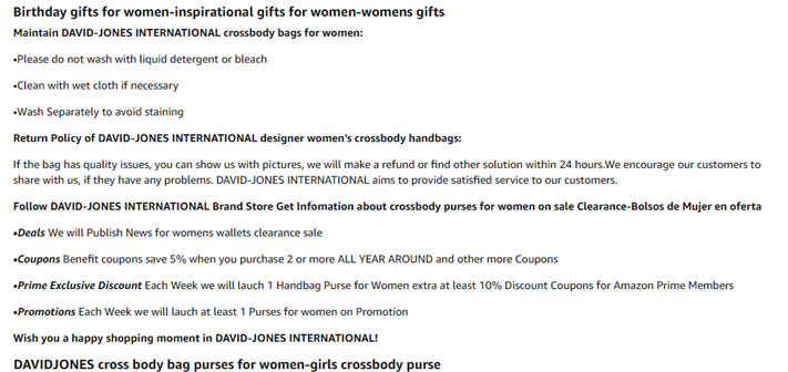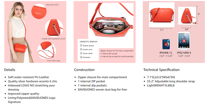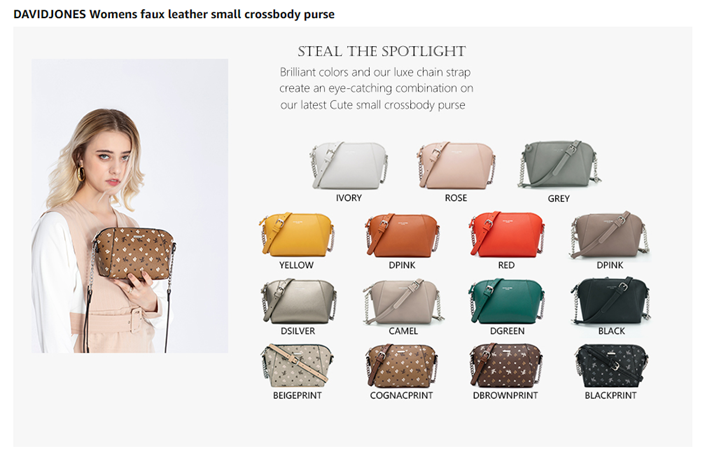 • BRAND:DAVIDJONES purses for women designed in French since 1987.We are distributing Great stylish and versatile handbags for women in more than 100 countries .Excellent craftsmanship and refined premium quality leather like PU women purse.Decent quality women handbag with affordable price.