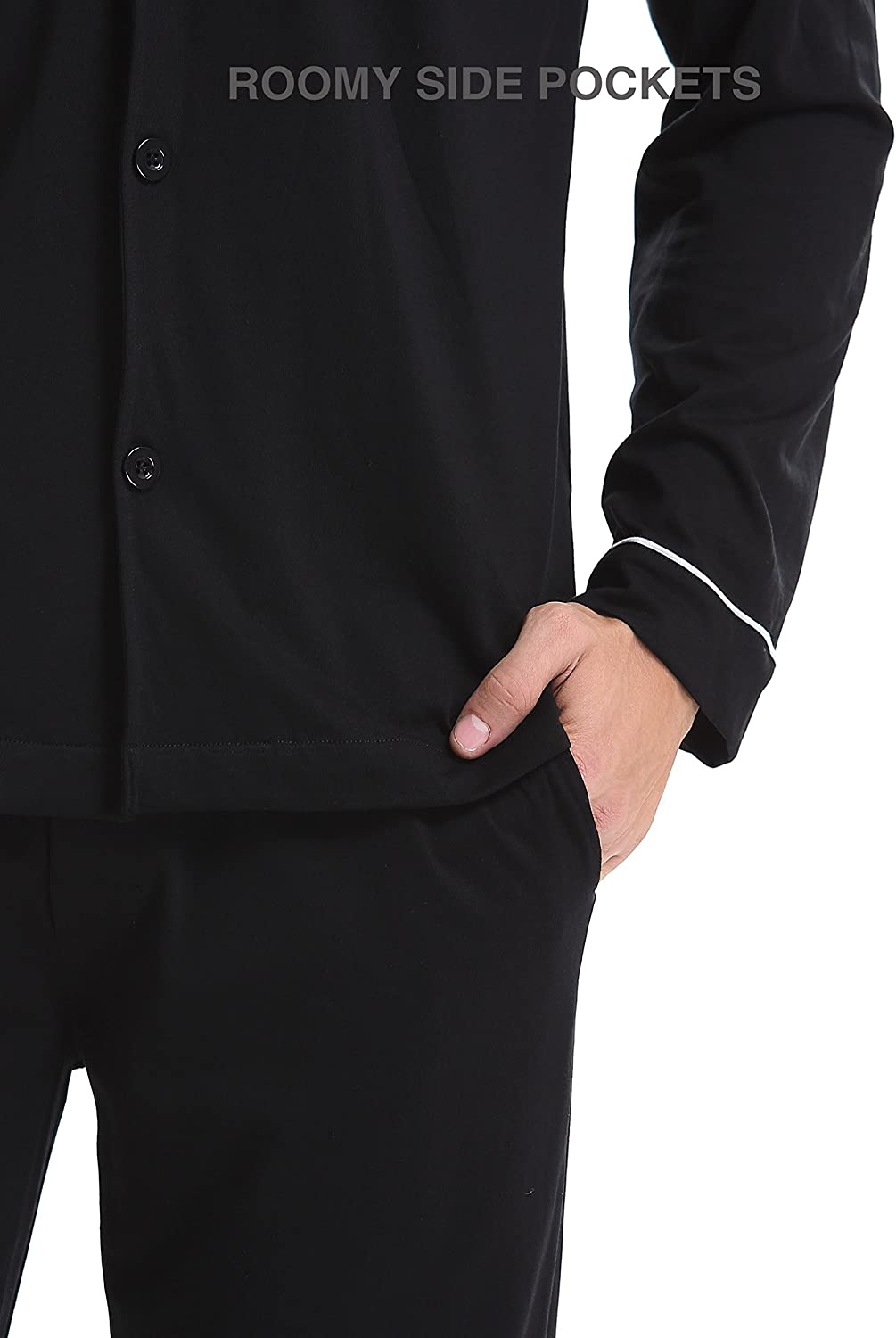 Button-down Collar: Long sleeve pajamas for men with pocket for a classic look