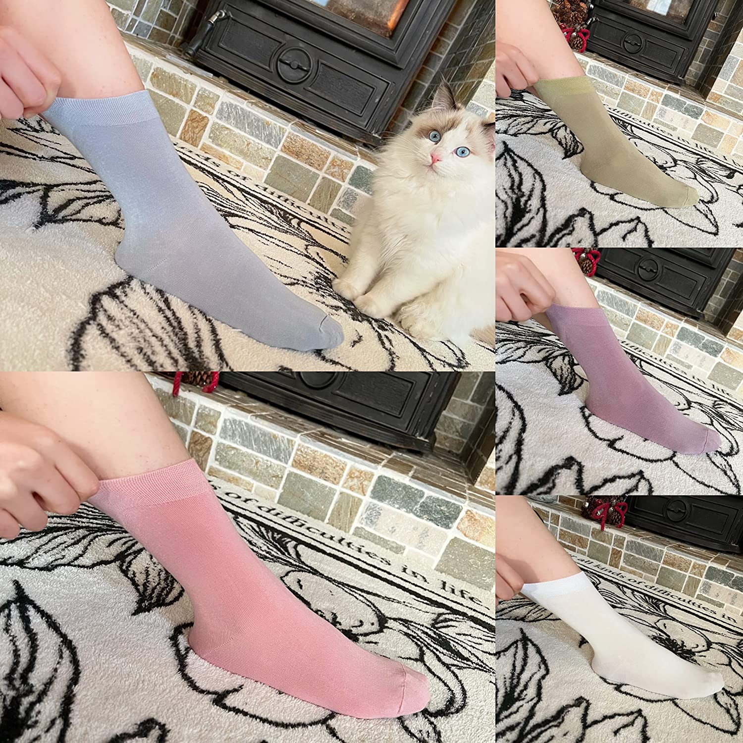SERISIMPLE Women Thin Bamboo Socks Crew Lightweight Above Ankle Casual Dress Sock For Ladies Bootie Trouser 5 Pairs