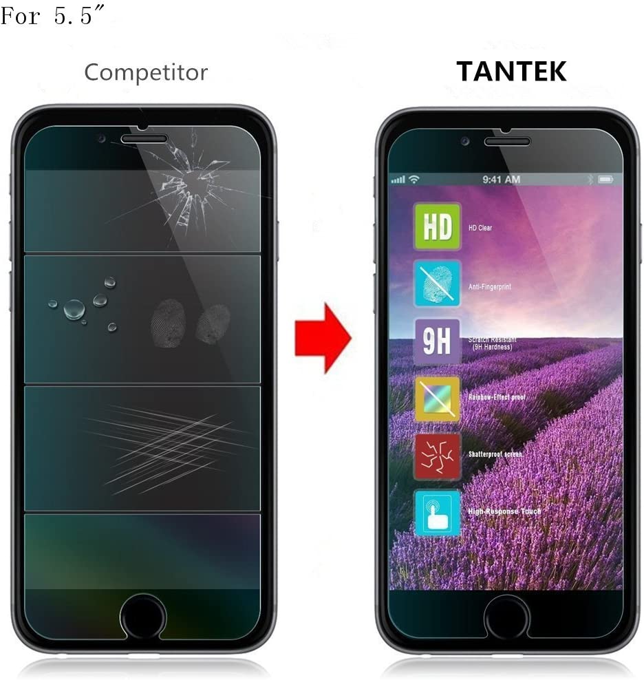 iPhone 8 Plus, 7 Plus Screen Protector, TANTEK Tempered Glass/Case Friendly Screen Protector for Apple iPhone 8 Plus, 7 Plus, 6S Plus, 6 Plus[5.5" inch] 2017 2016, 2015 (2-Pack)
