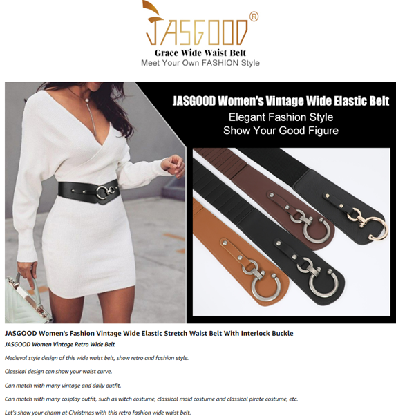JASGOOD Women's Fashion Vintage Wide Elastic Stretch Waist Belt With Interlock Buckle Halloween Belt