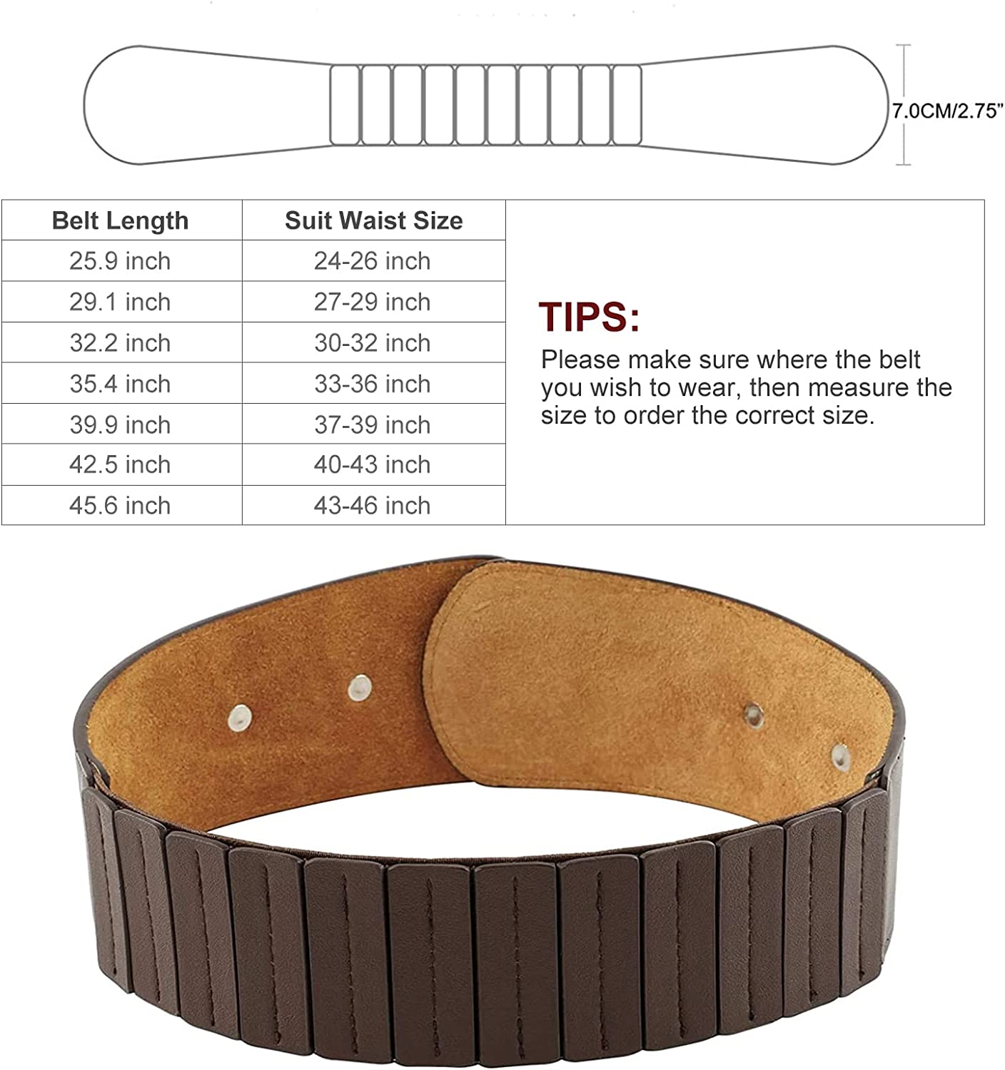 • The Stylish Wide Women Belt is perfect for decorating with all kinds of clothes as you like. This women belt is perfect for dresses, skirts,sweaters, down jackets or other clothes for all occasion in the four seasons.