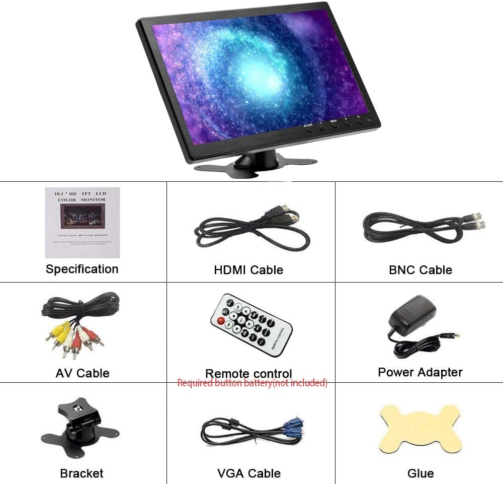 ✔️【Portable & New Design】10.1 inch monitor is very portable and easy to use. The small monitor that sports a four-sided slim bezel design. Its IPS panel has a full-HD 1024*600 resolution, aspect ratio 16:9. With NTSC / PAL video color system. Brightness and Contrast can be adjust, you will get much richer colors and clear viewing angles that are near horizontal