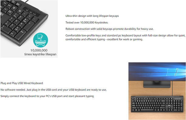 Low-Profile Keys,comfortable typing,our USB keyboard is plug and play, no software needed