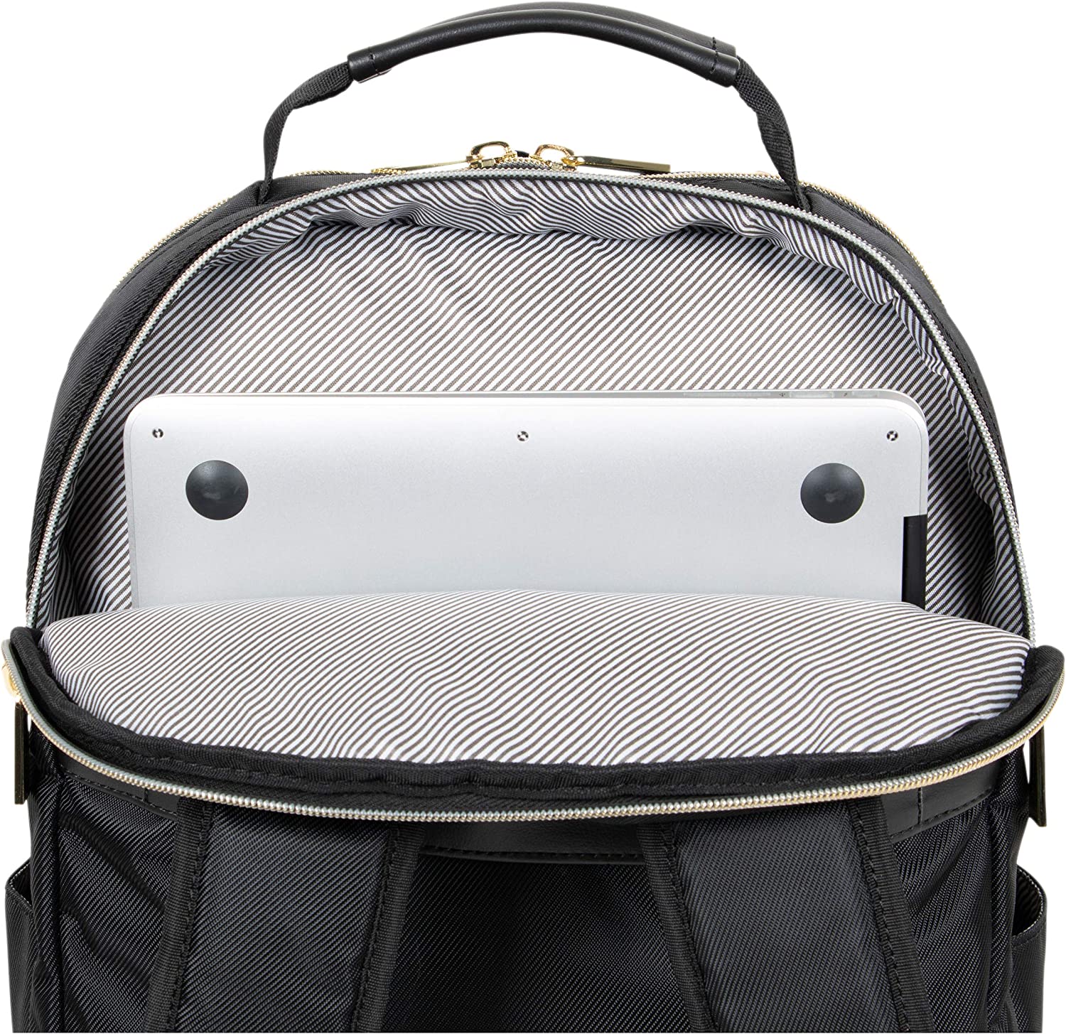 • 【Fashion Forward Quality】Made of a stylish chevron quilted polyester-twill water-resistant exterior with gold-plated zippers. Interior features a fully lined tear-resistant stripe polyester lining that will stand up to daily use. The perfect 15-inch computer backpack to keep your business essentials organized while on the go.