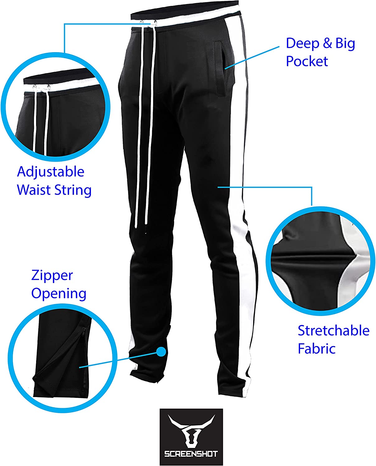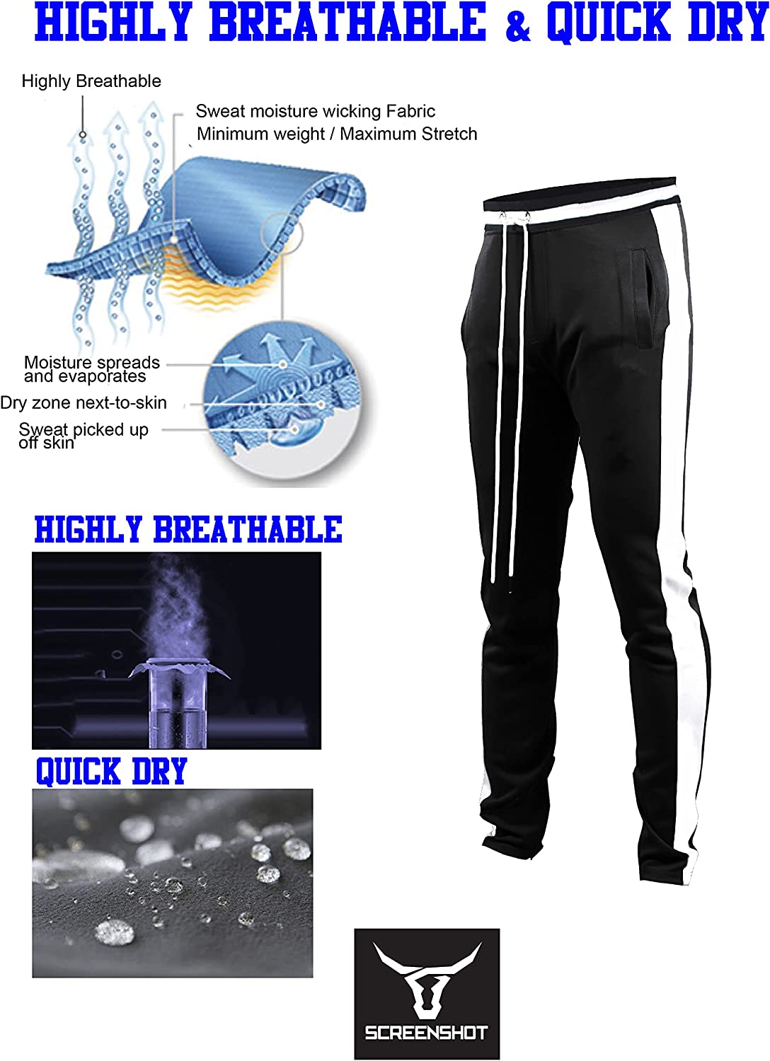 Screenshotbrand Mens Hip Hop Premium Slim Fit Track Pants - Athletic Jogger Bottom with Side Taping