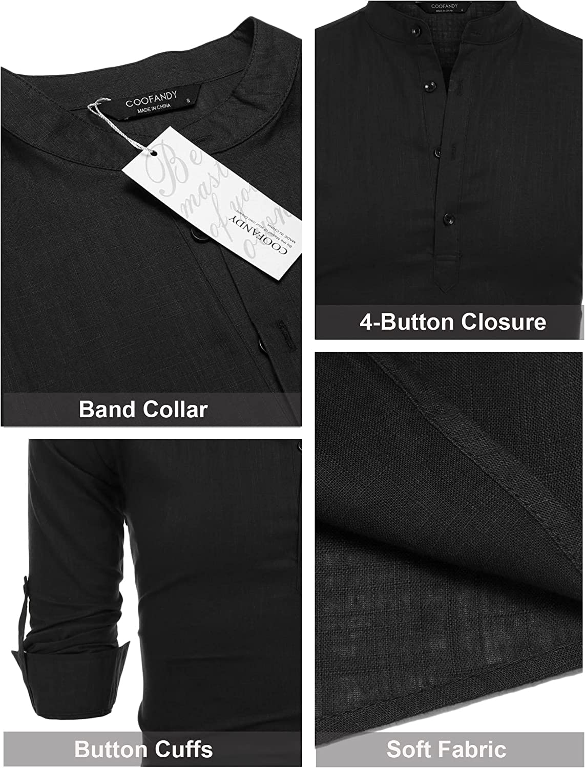 COOFANDY Men's Cotton Linen Henley Shirt Long Sleeve Hippie Casual Beach T Shirts