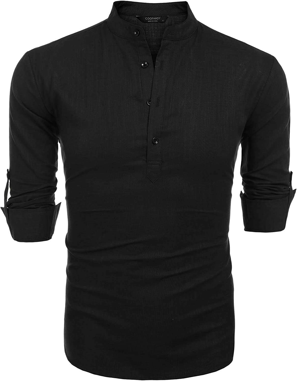 • 【STYLISH DESIGN】: Casual henley neck shirts, stand collar, simple style, solid color, slim fit, long sleeve(Roll-up), button-down closure, rounded hem, featured button detail.
