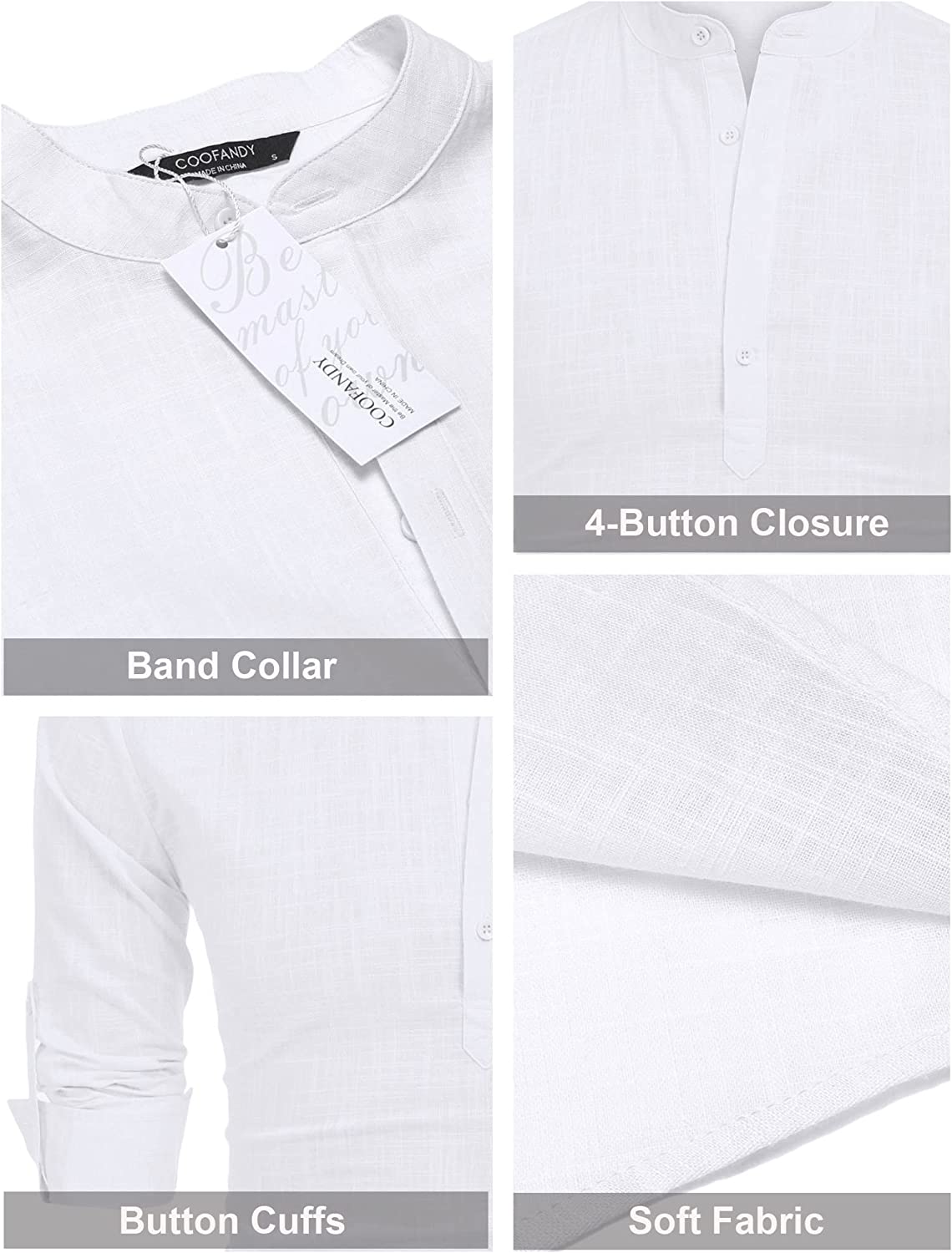 COOFANDY Men's Cotton Linen Henley Shirt Long Sleeve Hippie Casual Beach Shirts