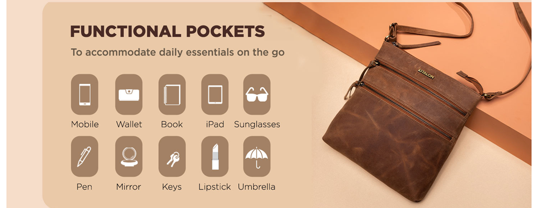 100% GENUINE LEATHER: Forget the feel of PU and faux leather with our authentic cowhide leather crossbody bag. Crafted from 100% oil-rich genuine leather, our Mocha Brown crossbody bag adds a fashionable touch to your wardrobe. The supreme quality bag has a smooth leather-like feel and smell which gets softer and better with every use. It is designed to resist wear and tear making it a versatile choice for your day to day use.