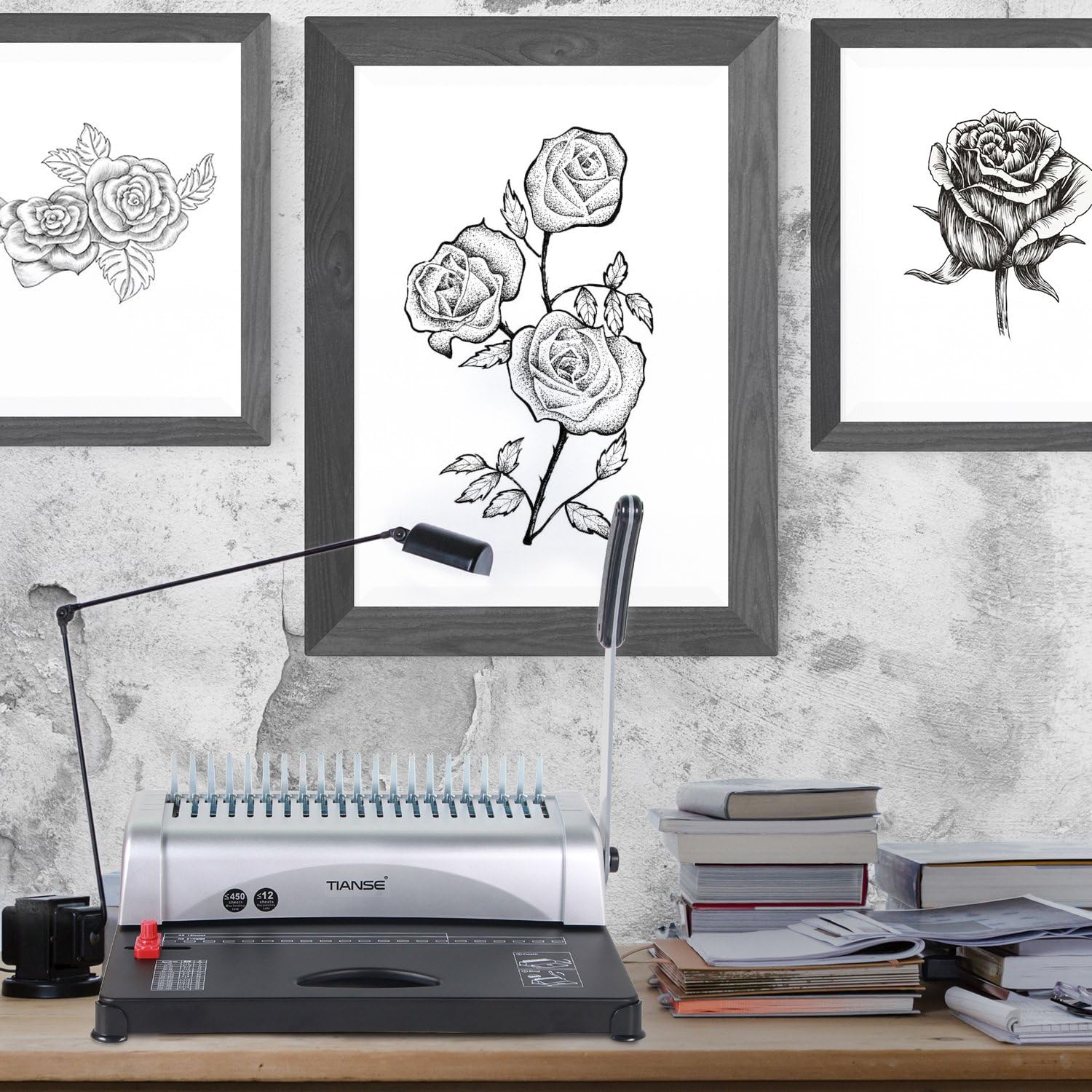 - 【Humanized Design】:TIANSE comb binding machine is suitable for Letter Size (19 holes), A4 Size (21 holes), A5 Size (15 holes). With adjustable edge guide, this machine also ensures a precise alignment with each document your bind, and you can easily customize the paper margin: 3mm, 4mm, 5mm to create professional-looking works.