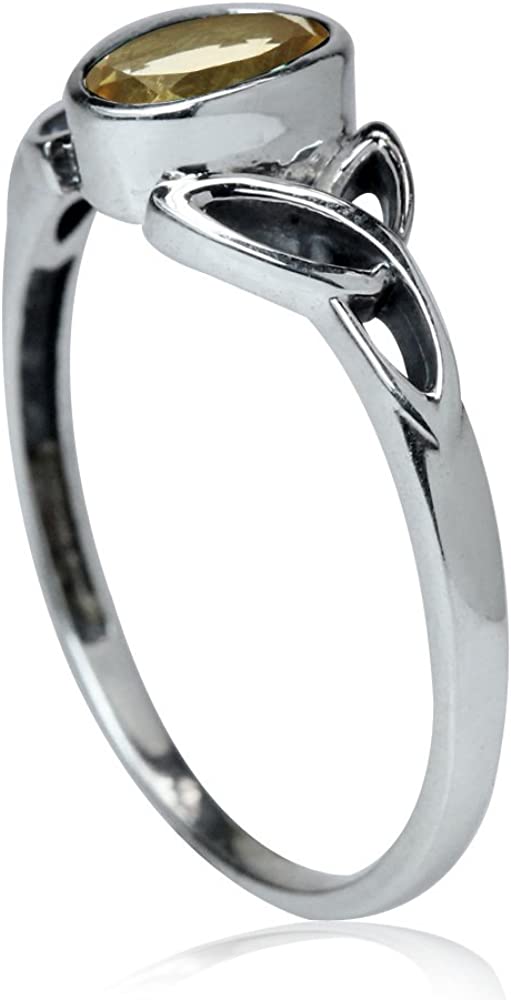 Silvershake 7x5MM Oval Shape Birthstone Gemstone 925 Sterling Silver Triquetra Celtic Trinity Knot Ring