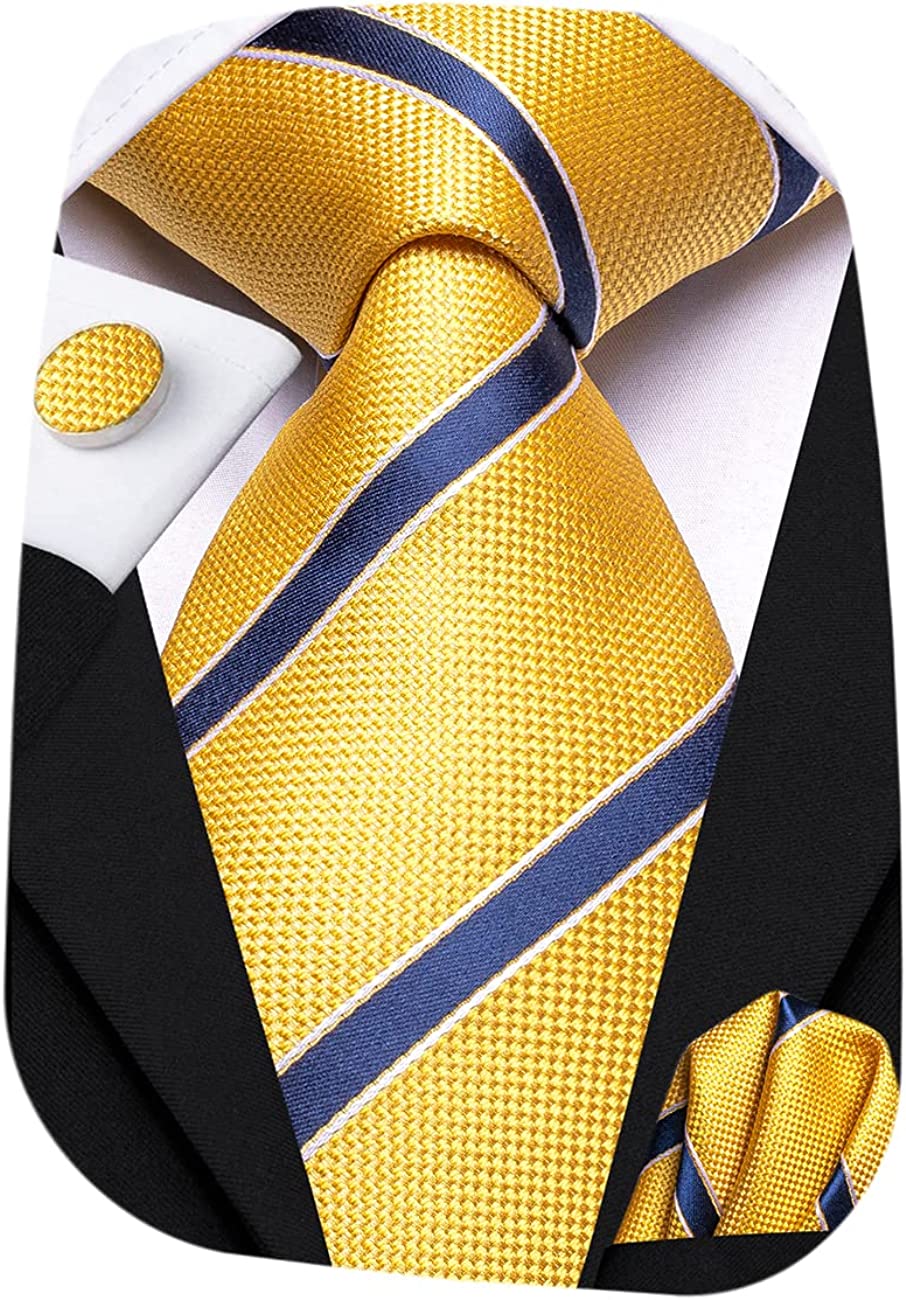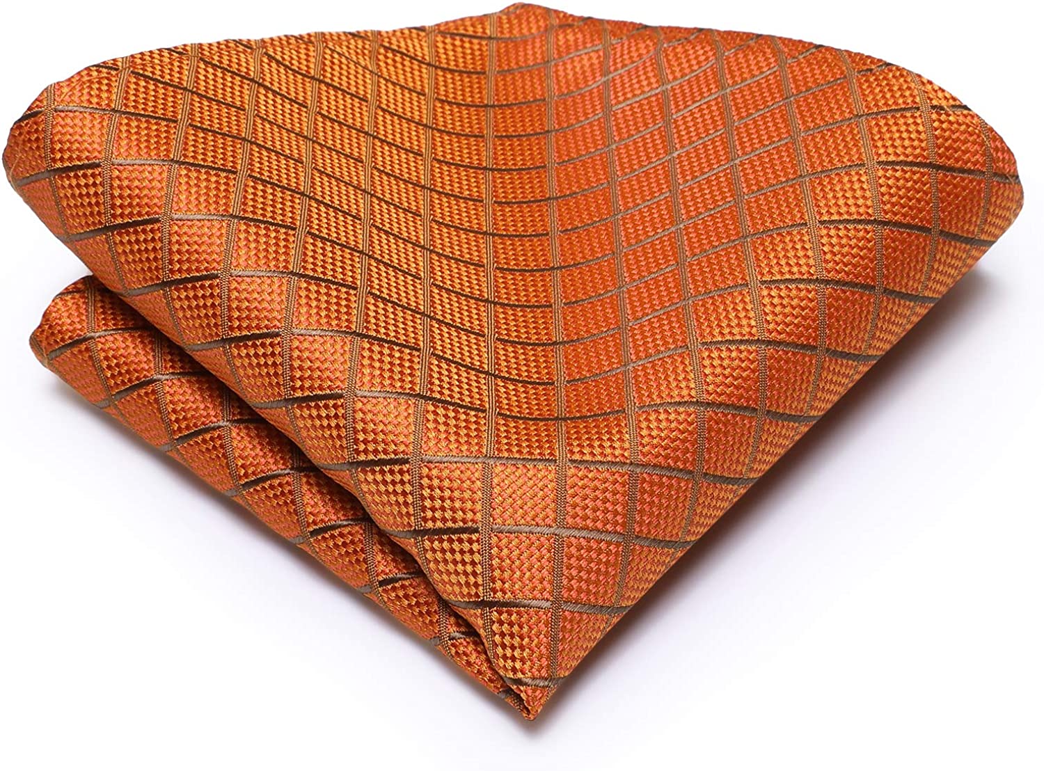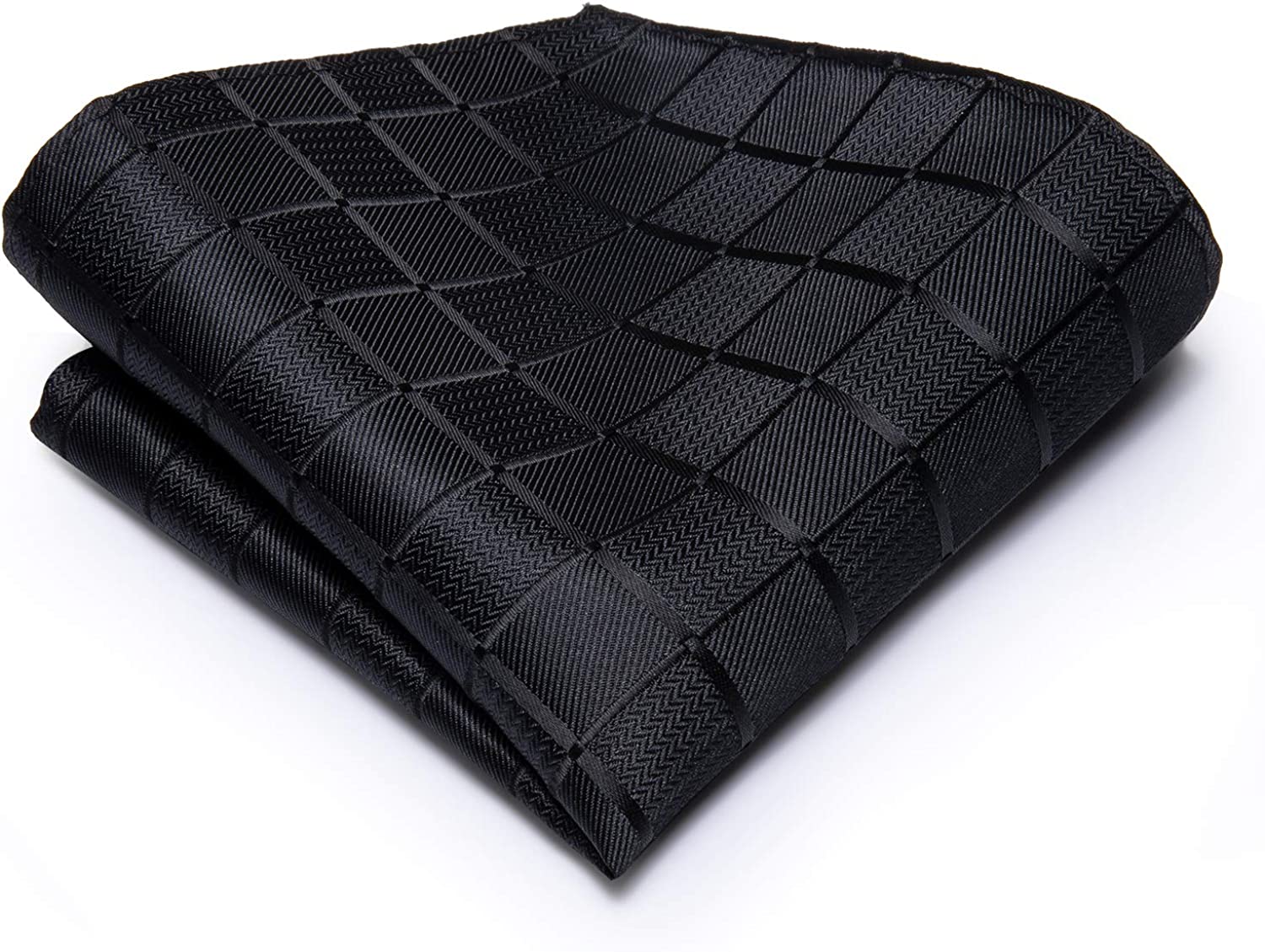 Hi-Tie Mens Plaid Ties Classic Necktie with Handkerchief Cufflinks Set