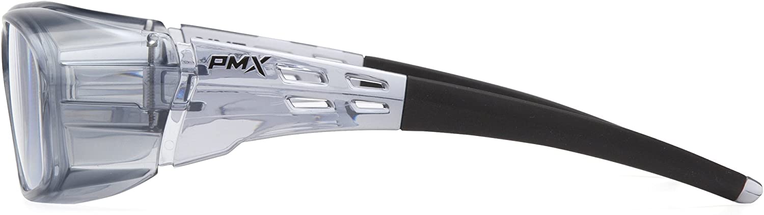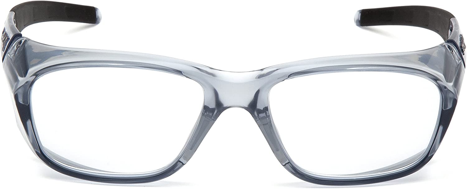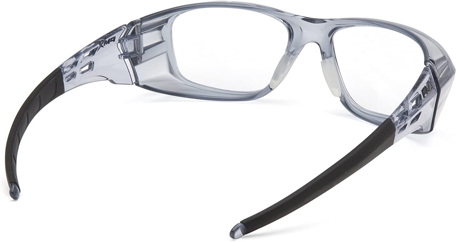 The Emerge Plus - Gray Frame/Clear full +2.0 reader lens provide full readers in a safety glass. The rubber temple tips ensure the glass fits comfortably over the face and ear. The soft nosepiece provides comfort for extended use.