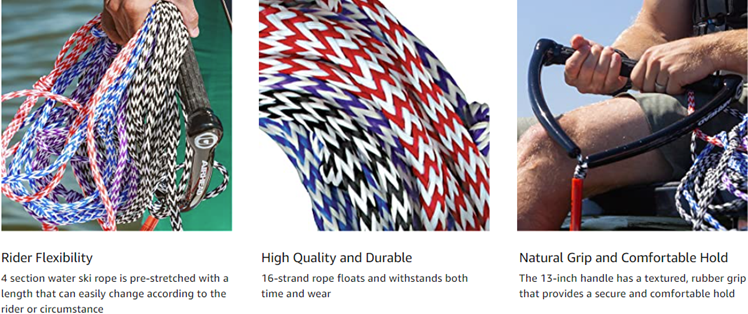 • Premium water ski tow rope features a comfortable grip 12-inch aluminum core handle with molded finger protectors, so you’ll always be able to hang on tight with ease