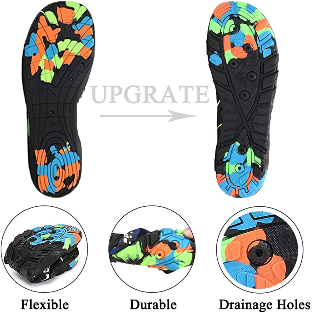 • NON-SLIP & QUICK DRY: Thicken outsole with stronger traction, prevent you from slipping in slippery conditions. Drainage holes on each bottom to ensure the water can flow out of soles which create a cooler and healthier shoes environment
