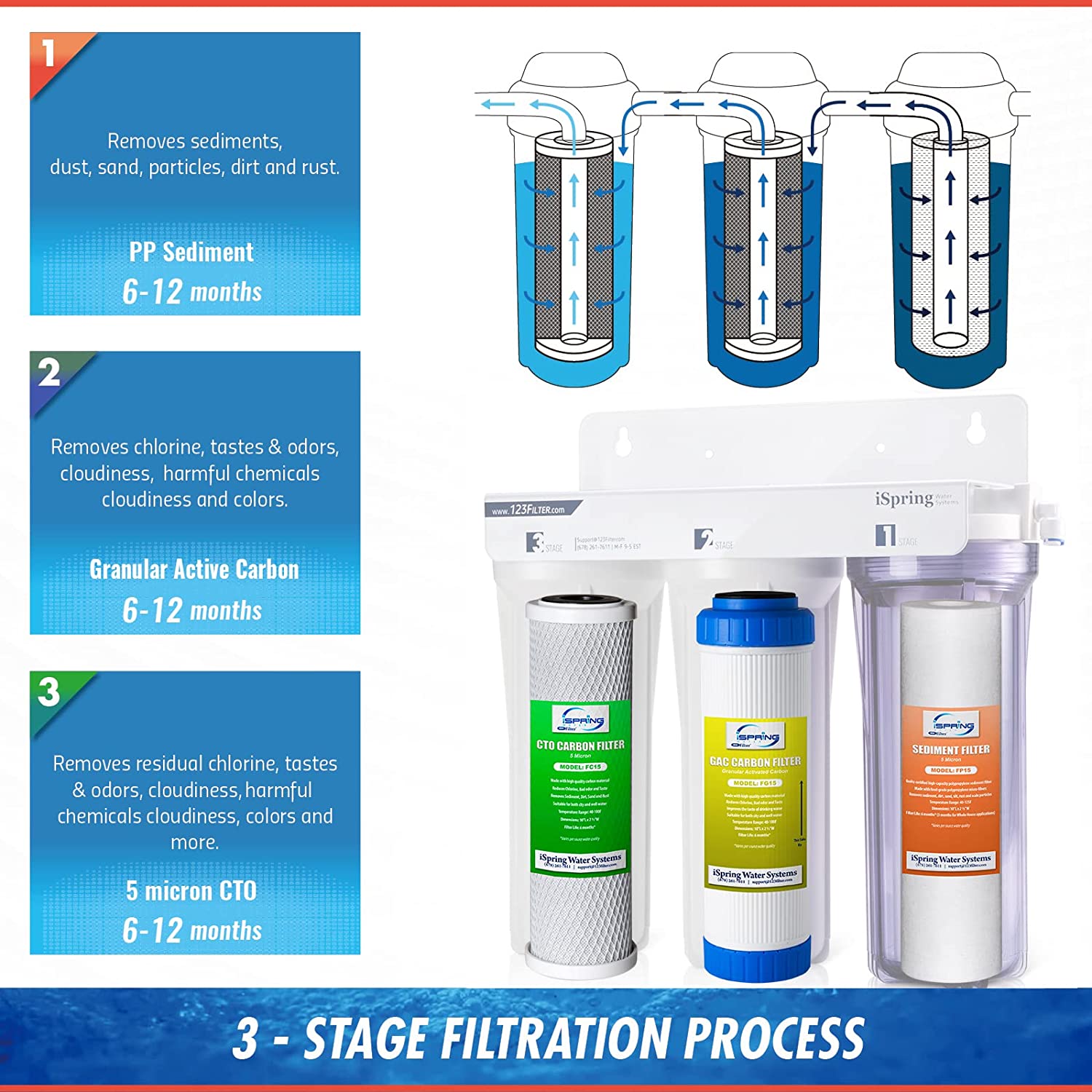 • [TDS Note and Customer Services]: This under sink water filter will not reduce the TDS of the incoming water. Instead, it keeps the healthy minerals in your water. If you are interested in a filter that removes TDS, please consider a Ispring reverse osmosis system.Backed by a 1-year Manufacturer with lifetime support from Atlanta, GA USA. For any issue or concern, please don't hesitate to contact us.
