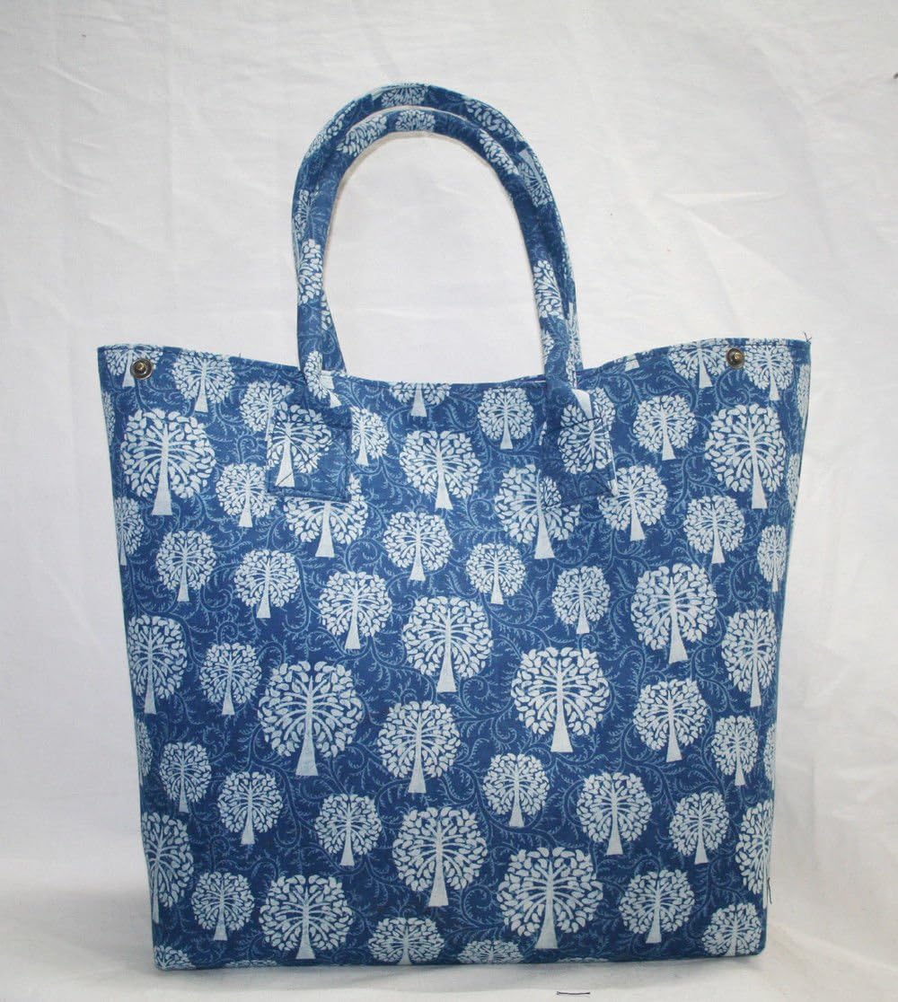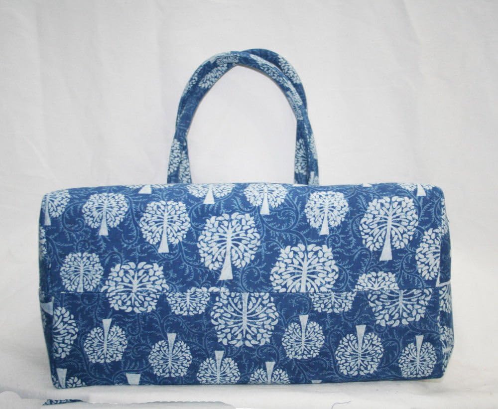 thehandicraftworld 100 PC Wholesale Lot New Hand Made Blue Block Print Hand Tote Bag Shoulder Bag Shopping Bag