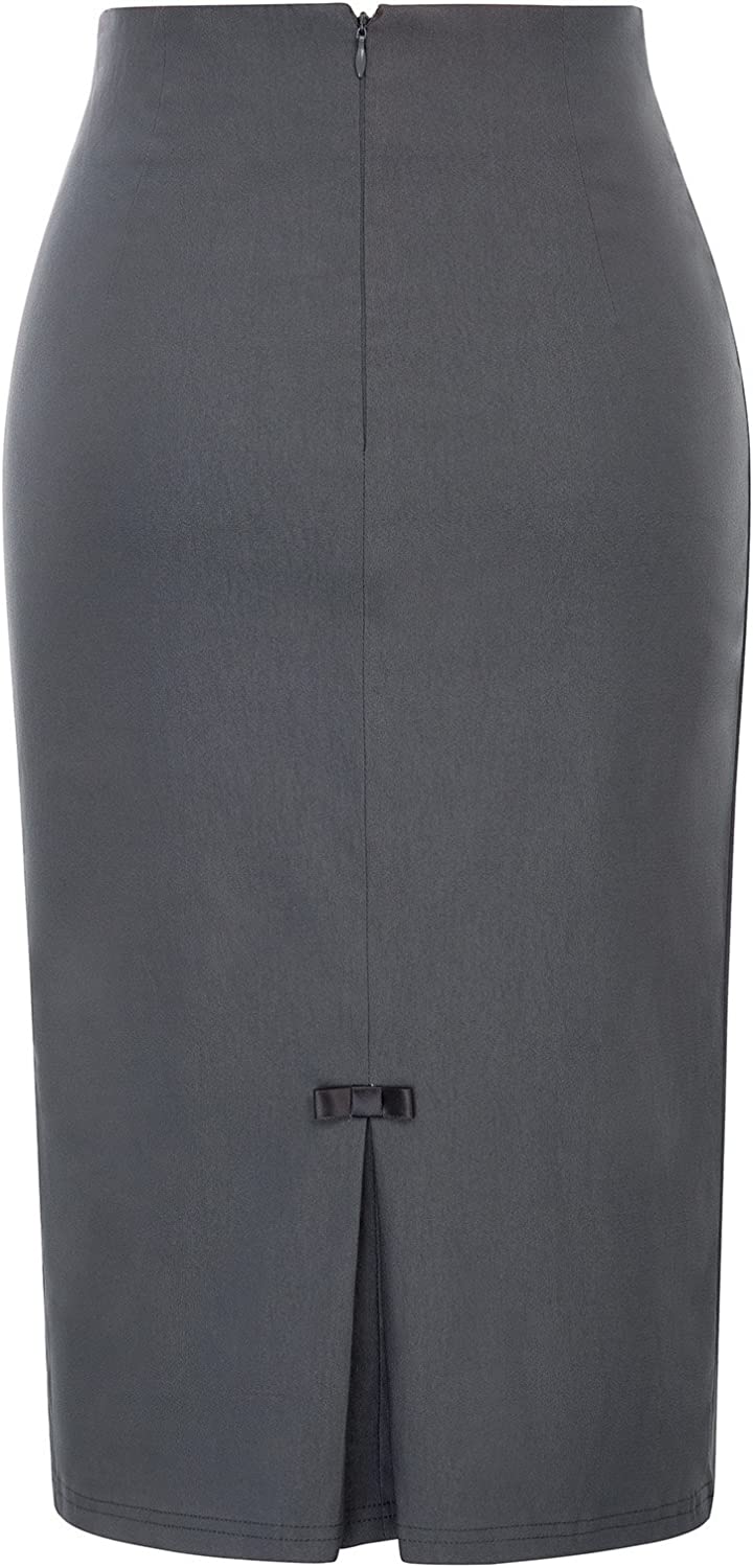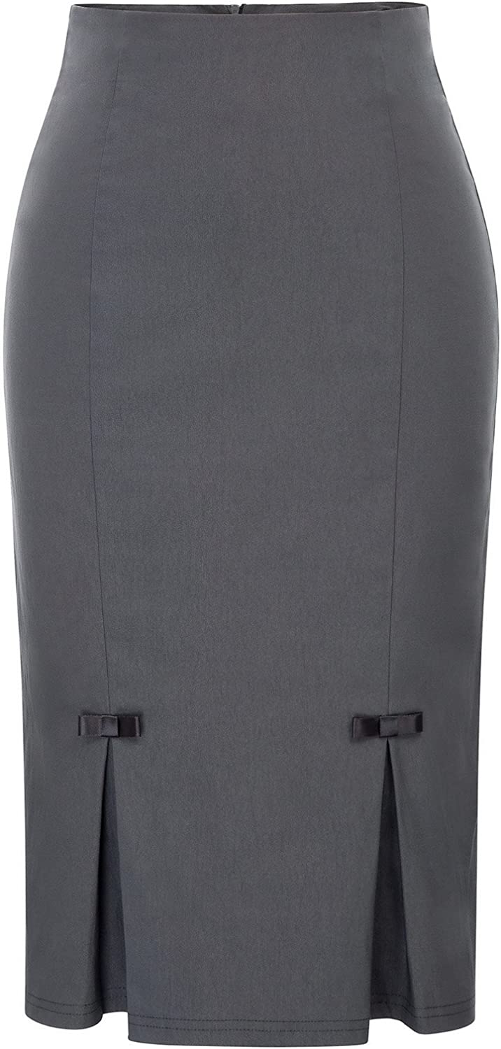 Belle Poque Women Midi High Waist Office Stretchy Pencil Skirt with Bow-Knot BP587