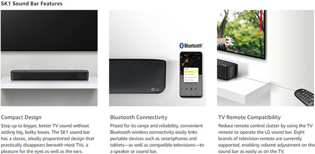 • Compact design: the SK1 sound bar has a classic, ideally proportioned design that practically disappears beneath most TVs, a pleasure for the eyes as well as the ears