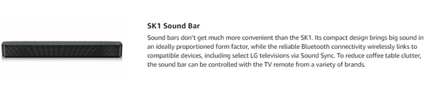 • Sound Sync: the SK1 Supports a convenient wireless audio Link between the Television and the speaker. Easy to set up, even easier to enjoy