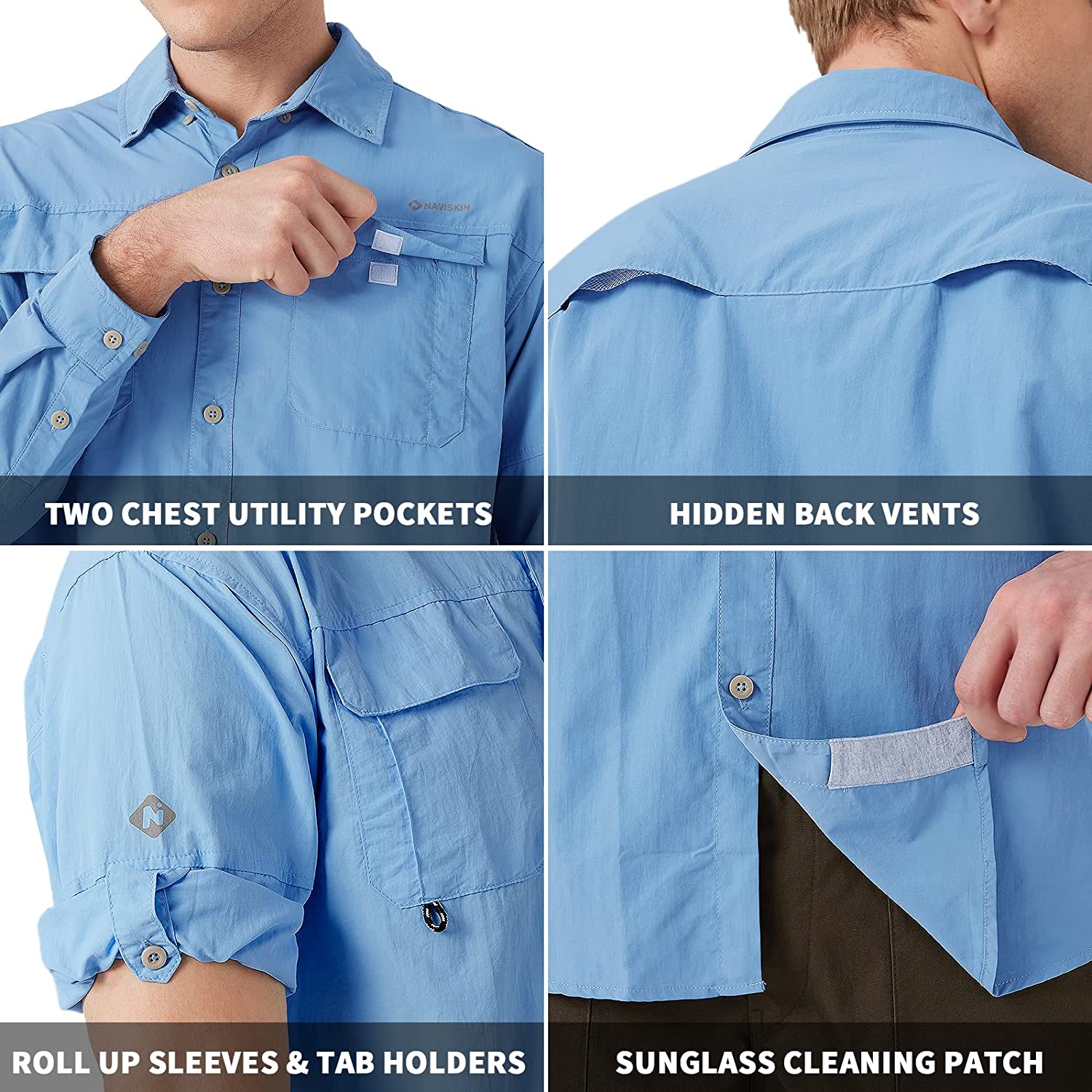 - UPF50+ Sun Protection & Quick Dry: NAVISKIN men quick dry sun protection shirts feature UPF 50+ fabrication for protection against harmful rays as well as breathable, lightweight, wicking fabric that pulls moisture away to keep you cool and dry, perfert for fishing, camping, hiking, traveling, climbing, any outdoor activities and ect.
