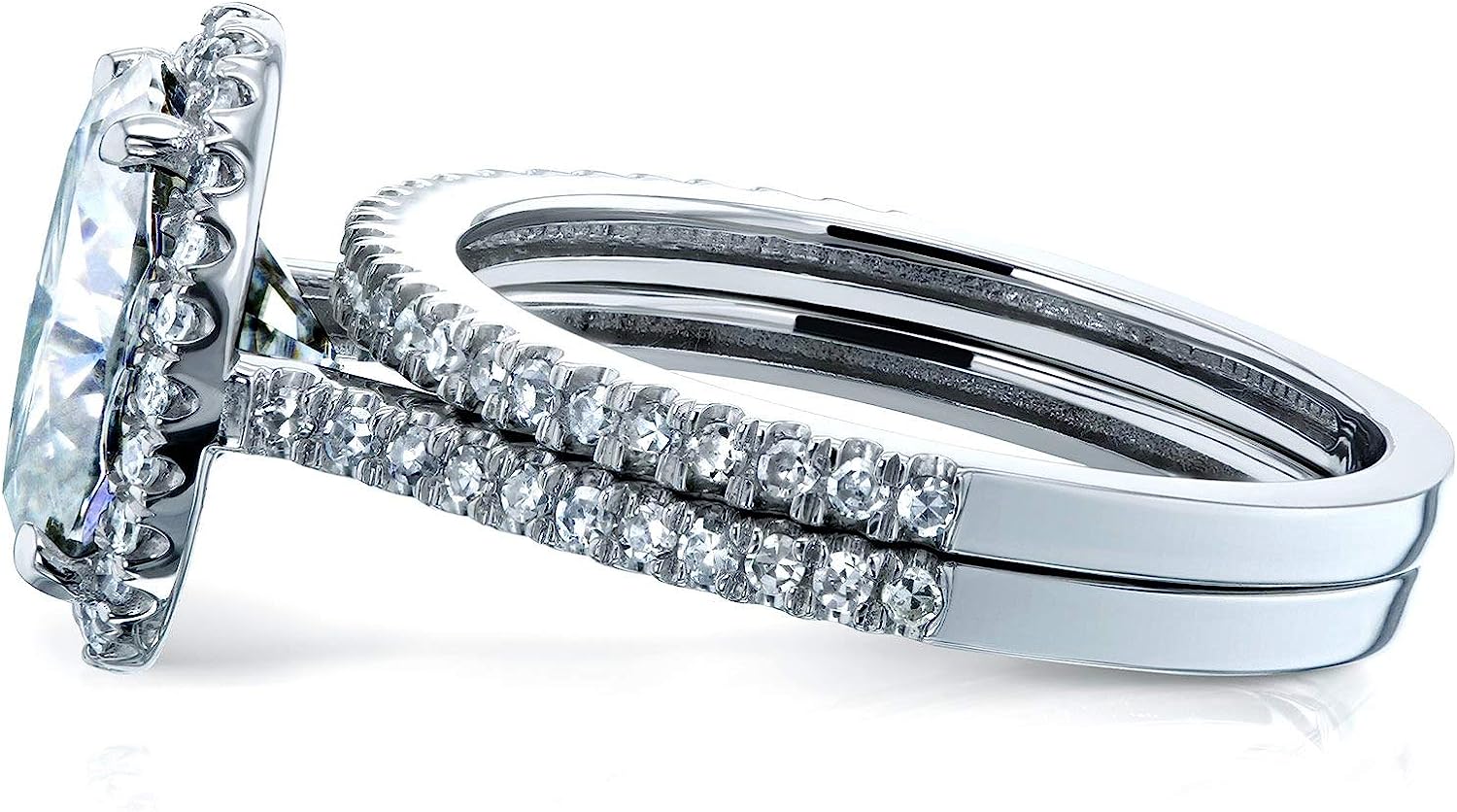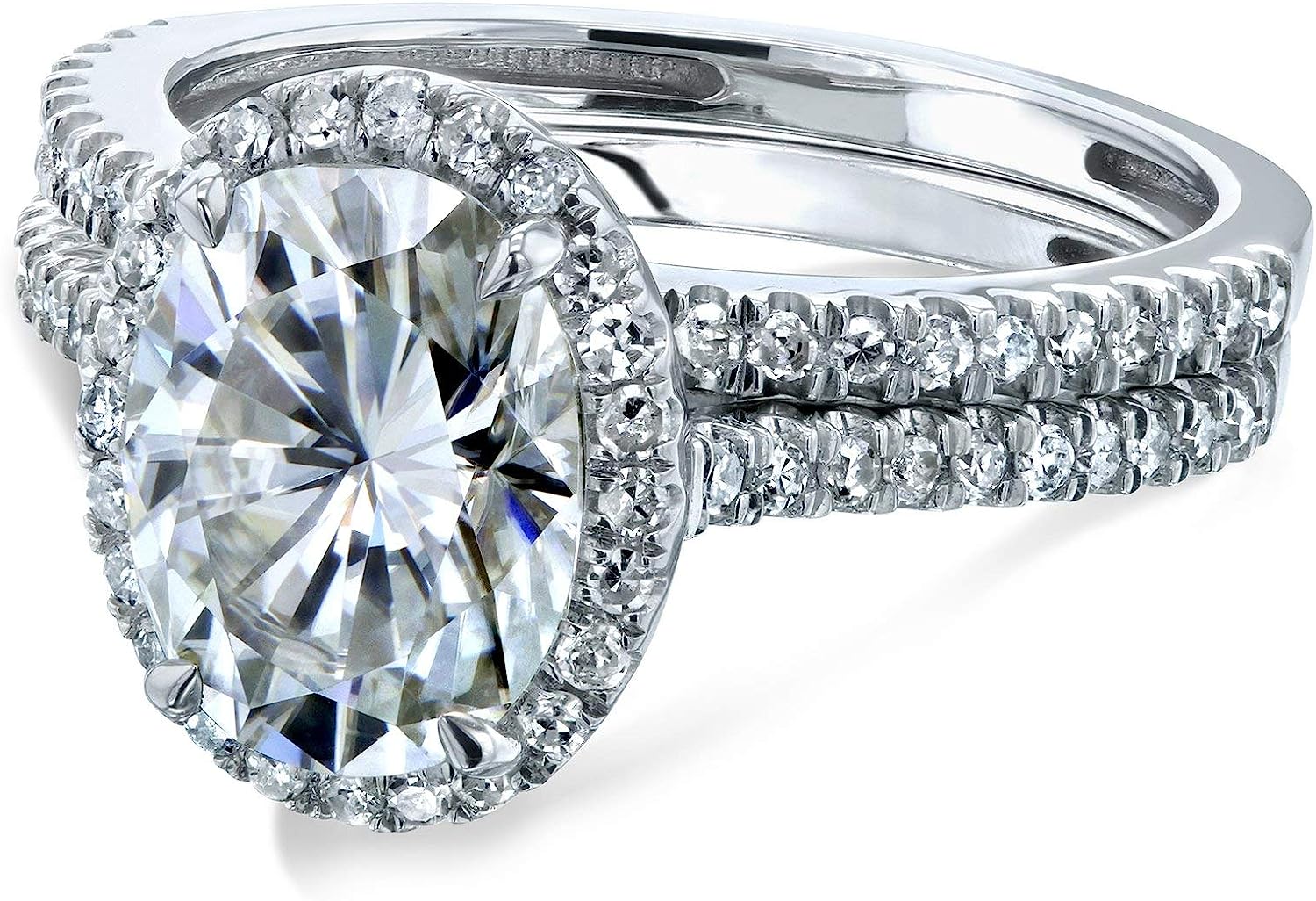 Kobelli Oval Moissanite Halo Bridal Rings Set 2 3/8 CTW 14k White Gold