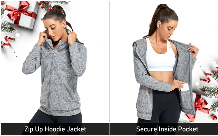 • √3 Pockets: 2 Side Pockets for storing your phone,keys, 1 inside pocket for your valuables. This workout hoodie match perfectly with your running leggings, jeans, shorts, sweatpants, tennis skirt etc.