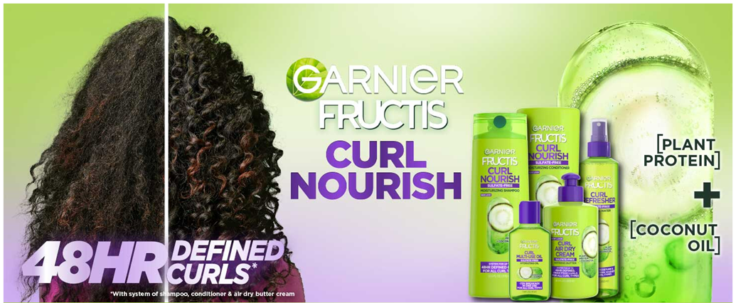 Get 3X the nourishment with Garnier Fructis Curl Nourish shampoo, conditioner and leave-in treatment